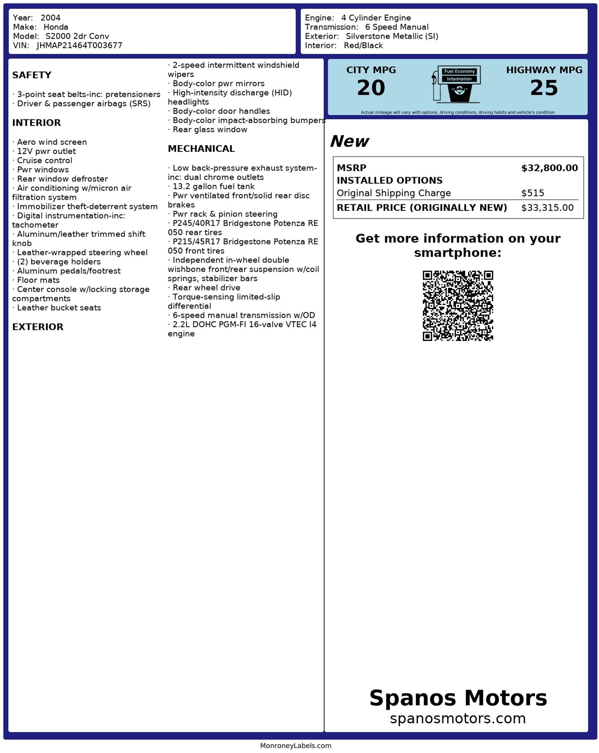 The 2004 S2000 captures the spirit of a true enthusiast car—lightweight, responsive, and engineered to deliver pure driving enjoyment every time you get behind the wheel.