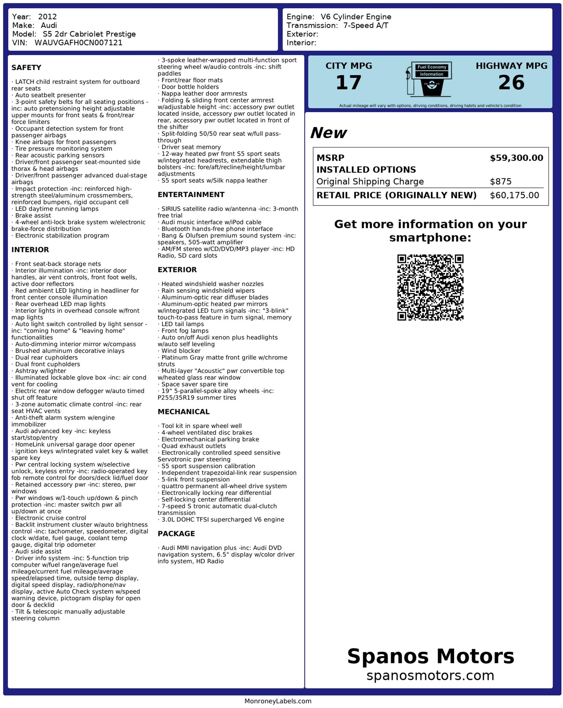 The 2012 Audi S5 Cabriolet Prestige tells a story of performance without compromise—an open-top luxury sport coupe built for those who want style, capability, and the enjoyment of every mile.