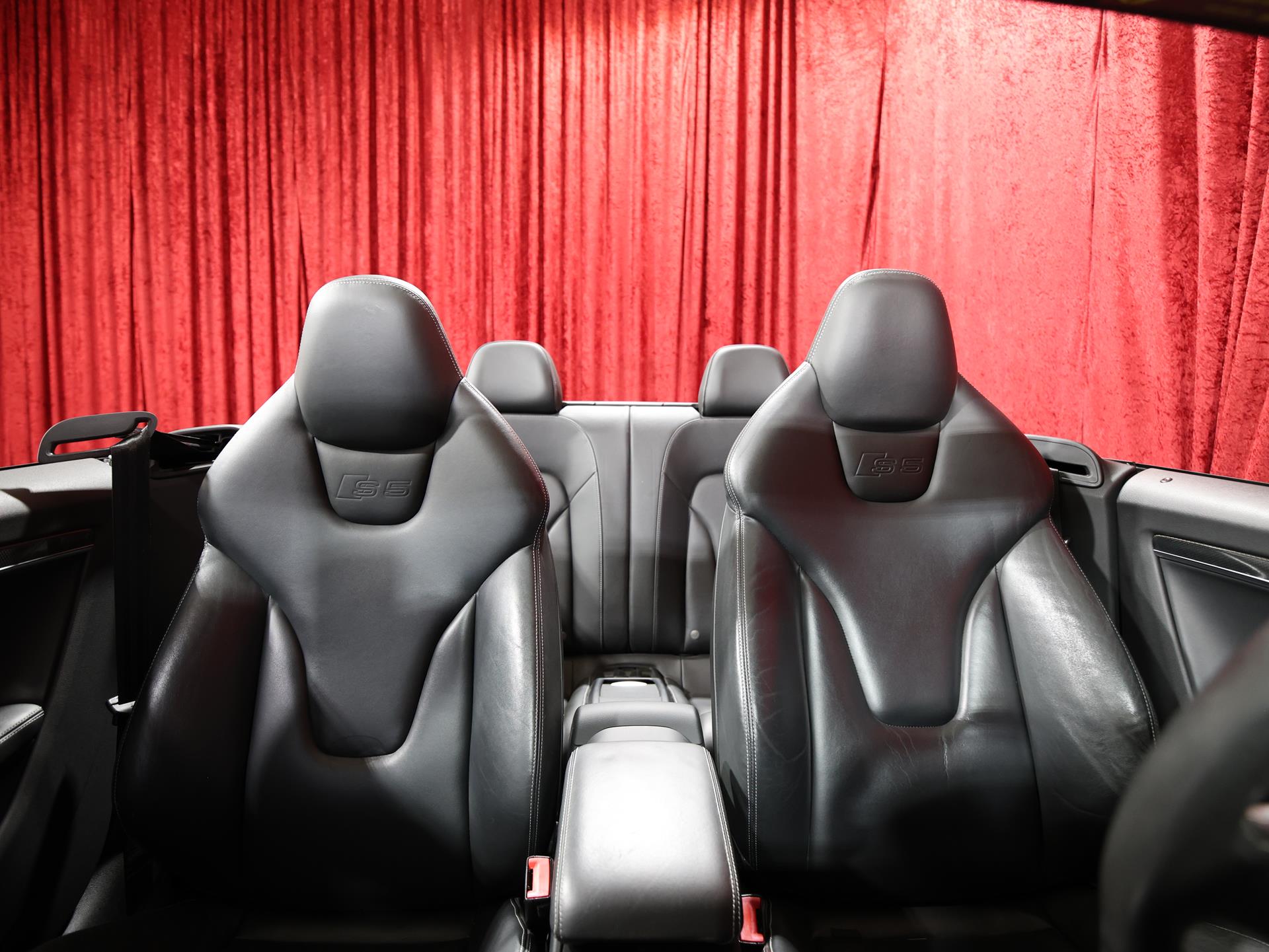 Lower the power soft top and the S5 transforms instantly, delivering the exhilaration of top-down driving while maintaining the solid, composed feel expected from a performance Audi. With the top raised, the cabin remains quiet and insulated, making it a true year-round convertible.