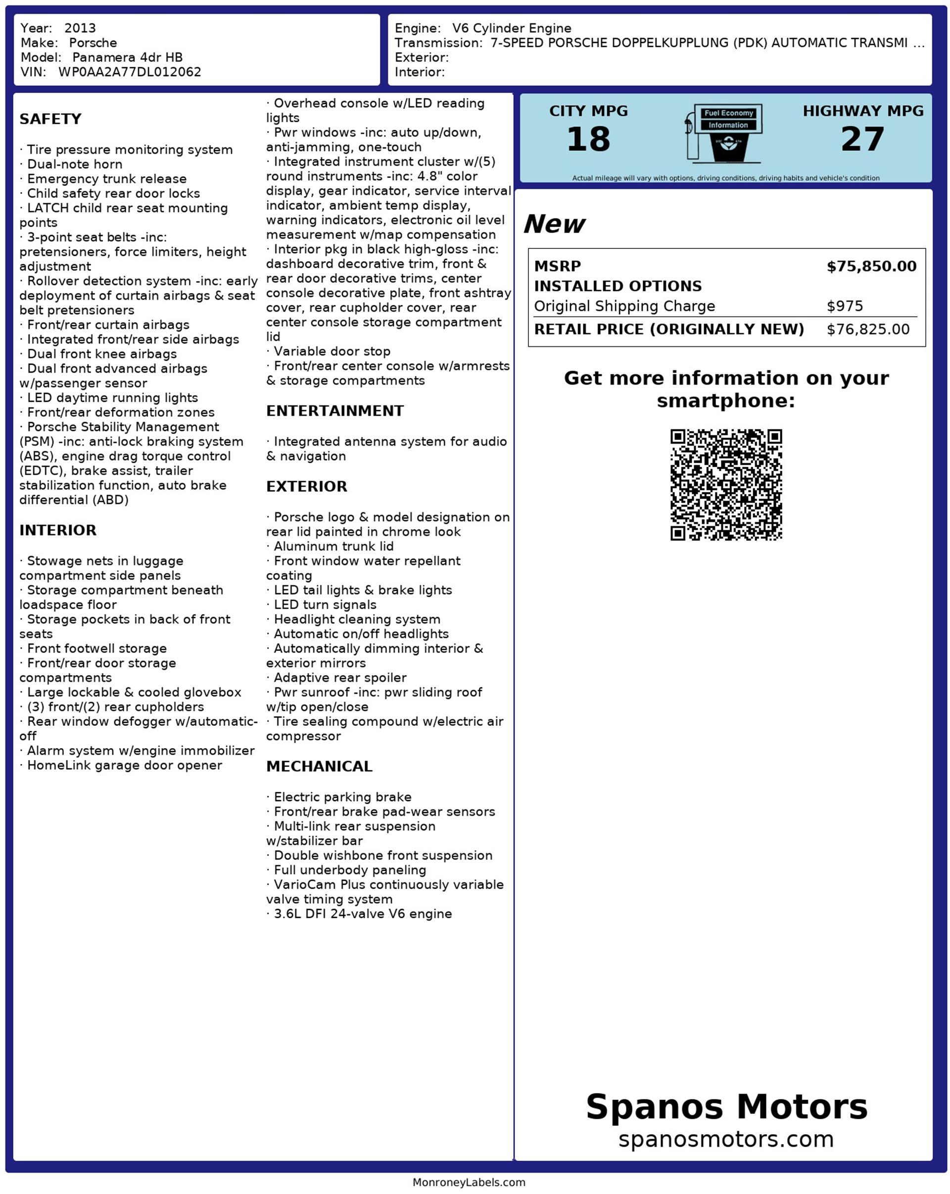 The 2013 Porsche Panamera delivers a distinctive blend of sports car performance and executive-level comfort, wrapped in a sleek four-door hatchback design that stands apart from traditional luxury sedans. It carries Porsche’s unmistakable presence, combining low, wide proportions with a purposeful stance that hints at the performance beneath.