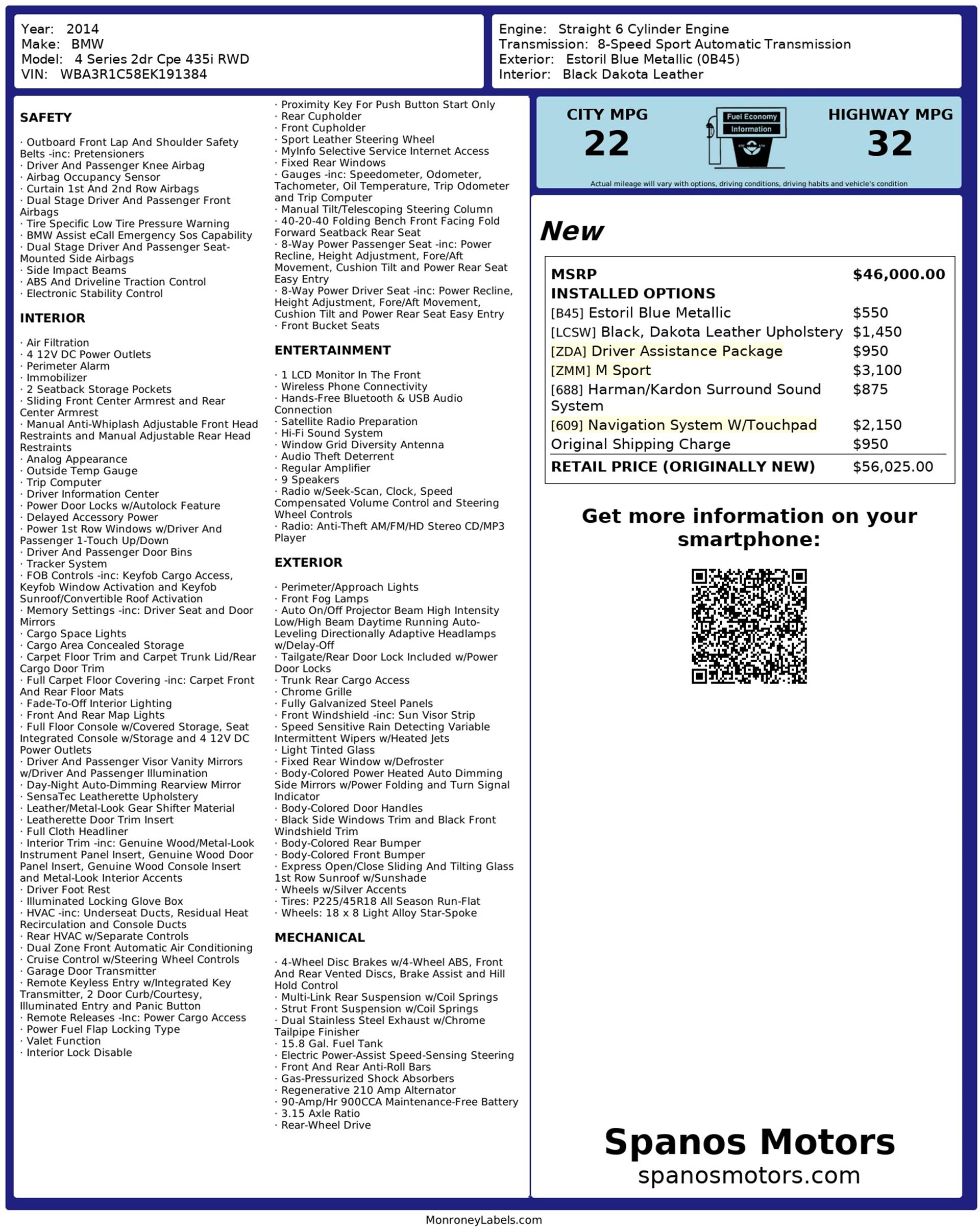 With its combination of turbocharged power, rear-wheel-drive balance, M Sport styling, and advanced technology, this 2014 BMW 435i Coupe stands as a compelling driver’s car—delivering both everyday refinement and true BMW performance.
