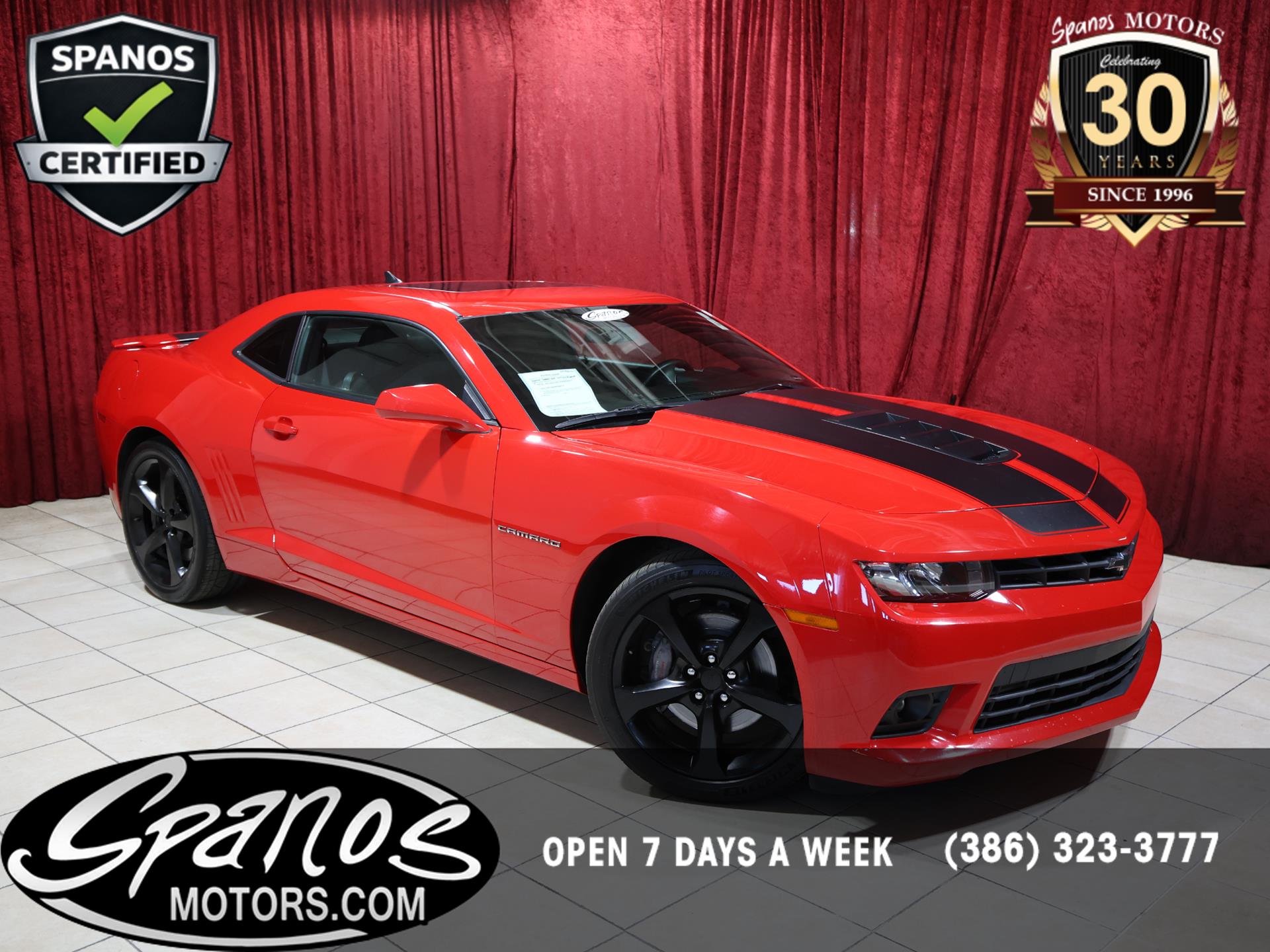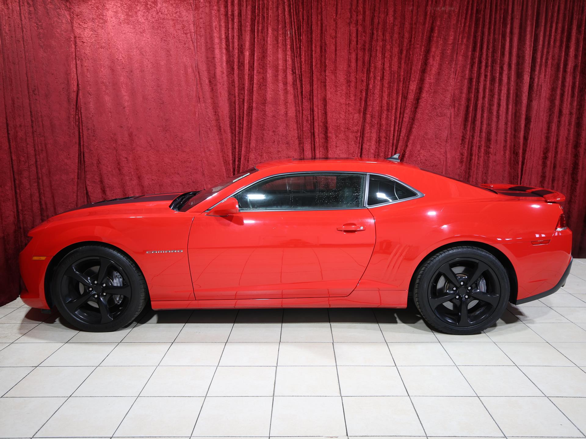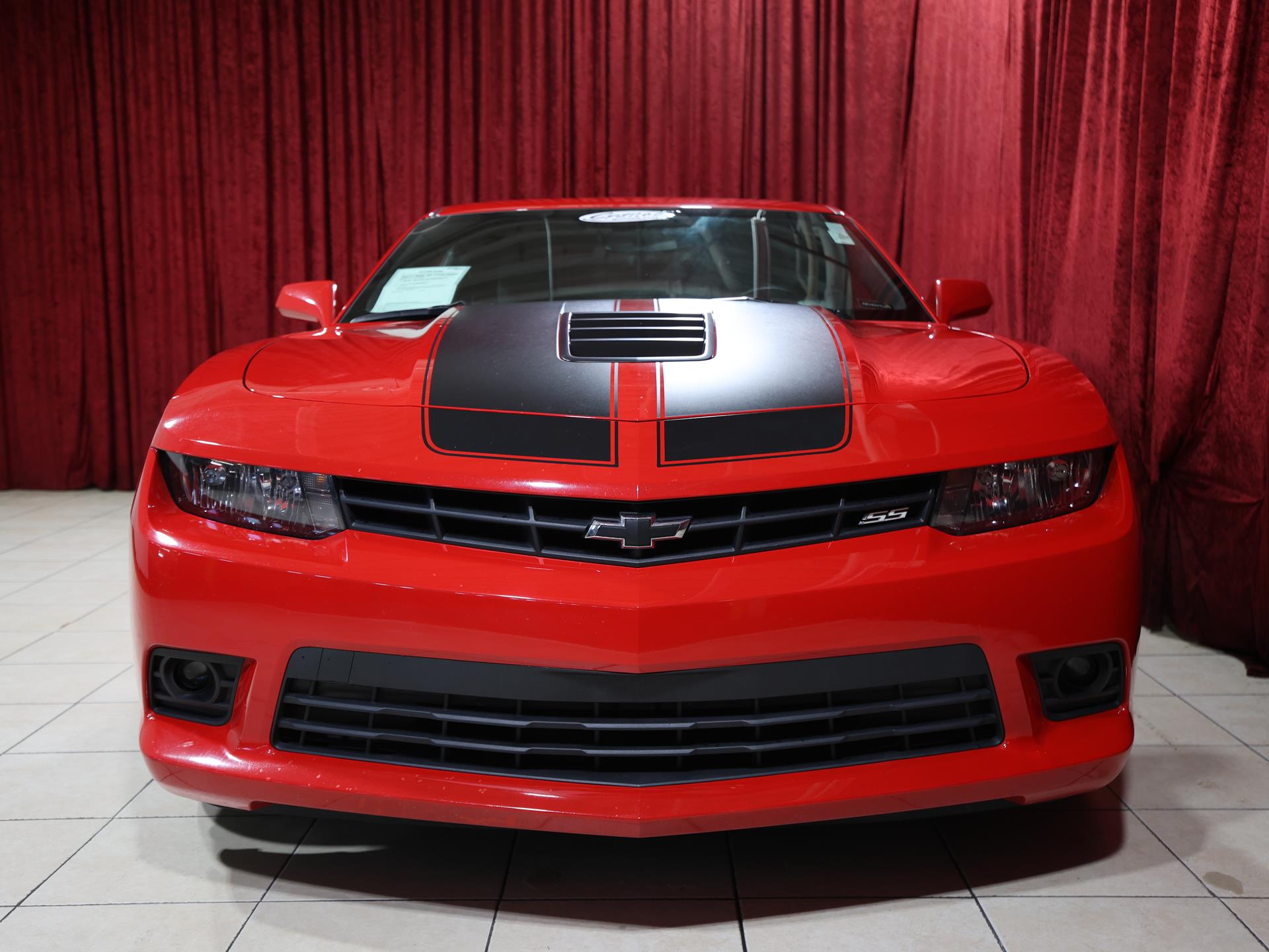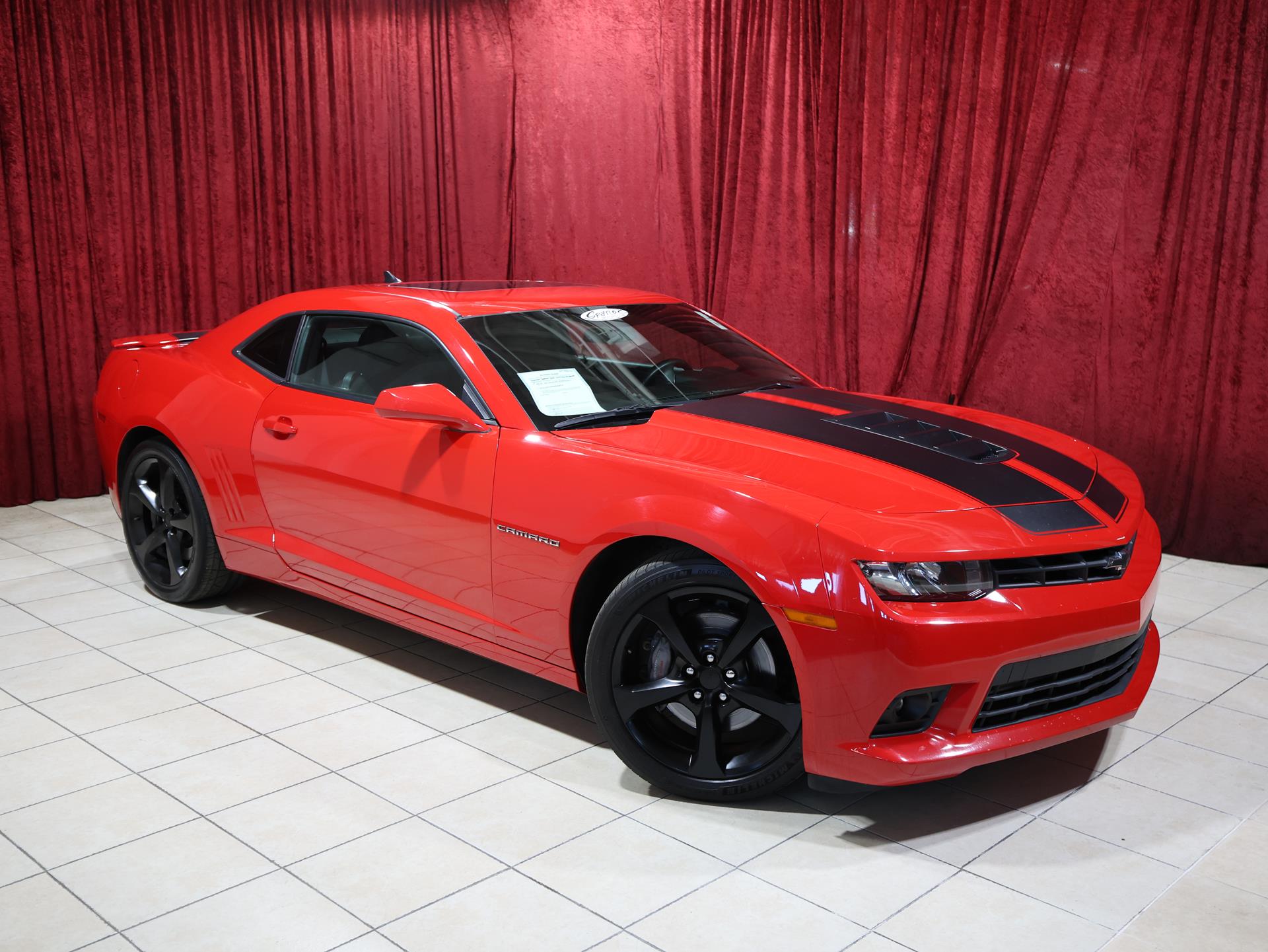 This 2014 Chevrolet Camaro SS Coupe with the 1SS package is a true driver’s car in every sense. Finished in Red Hot, it makes a bold first impression, made even more aggressive by the Black Rally Stripe Package that underscores its muscle-bound stance and performance DNA.