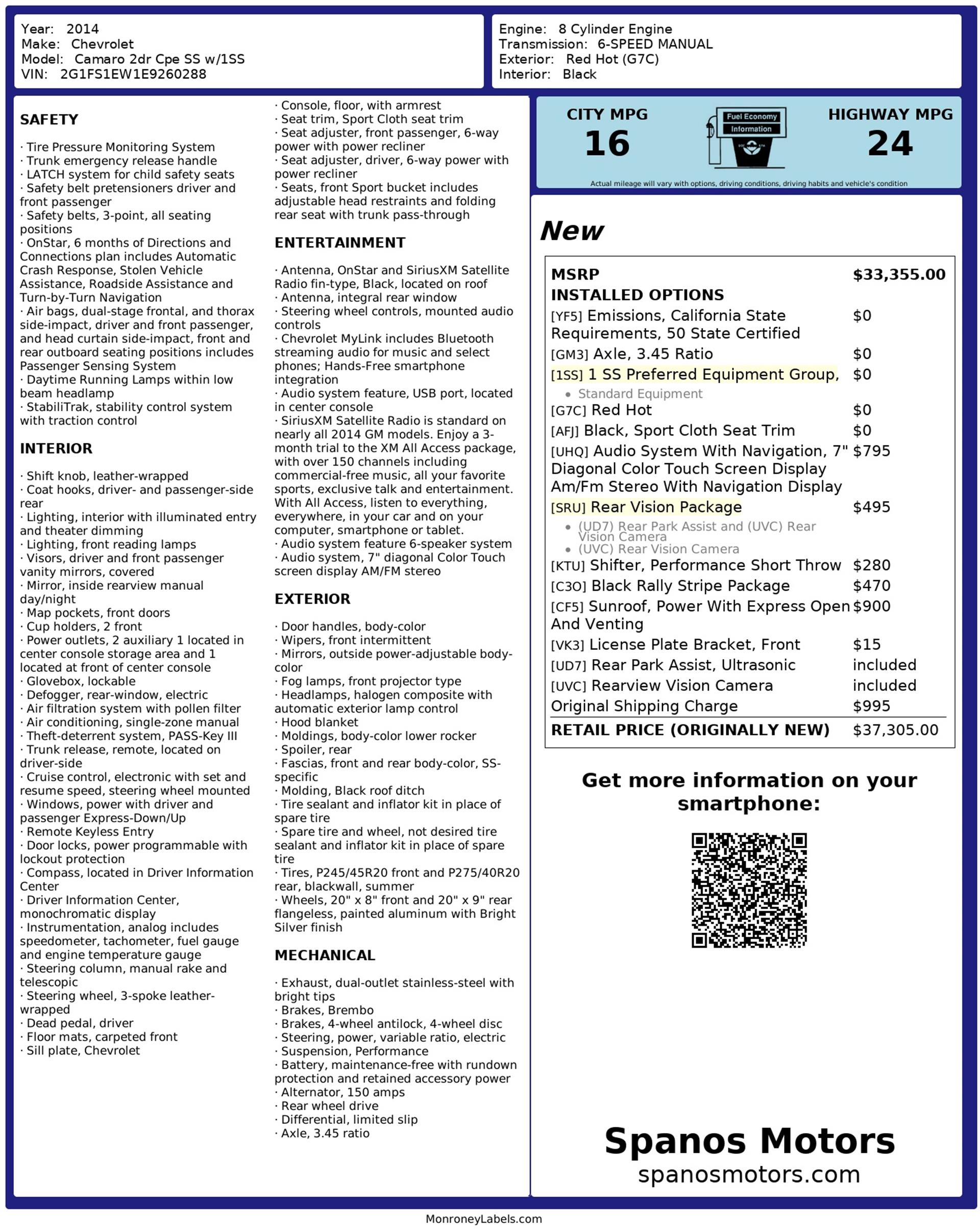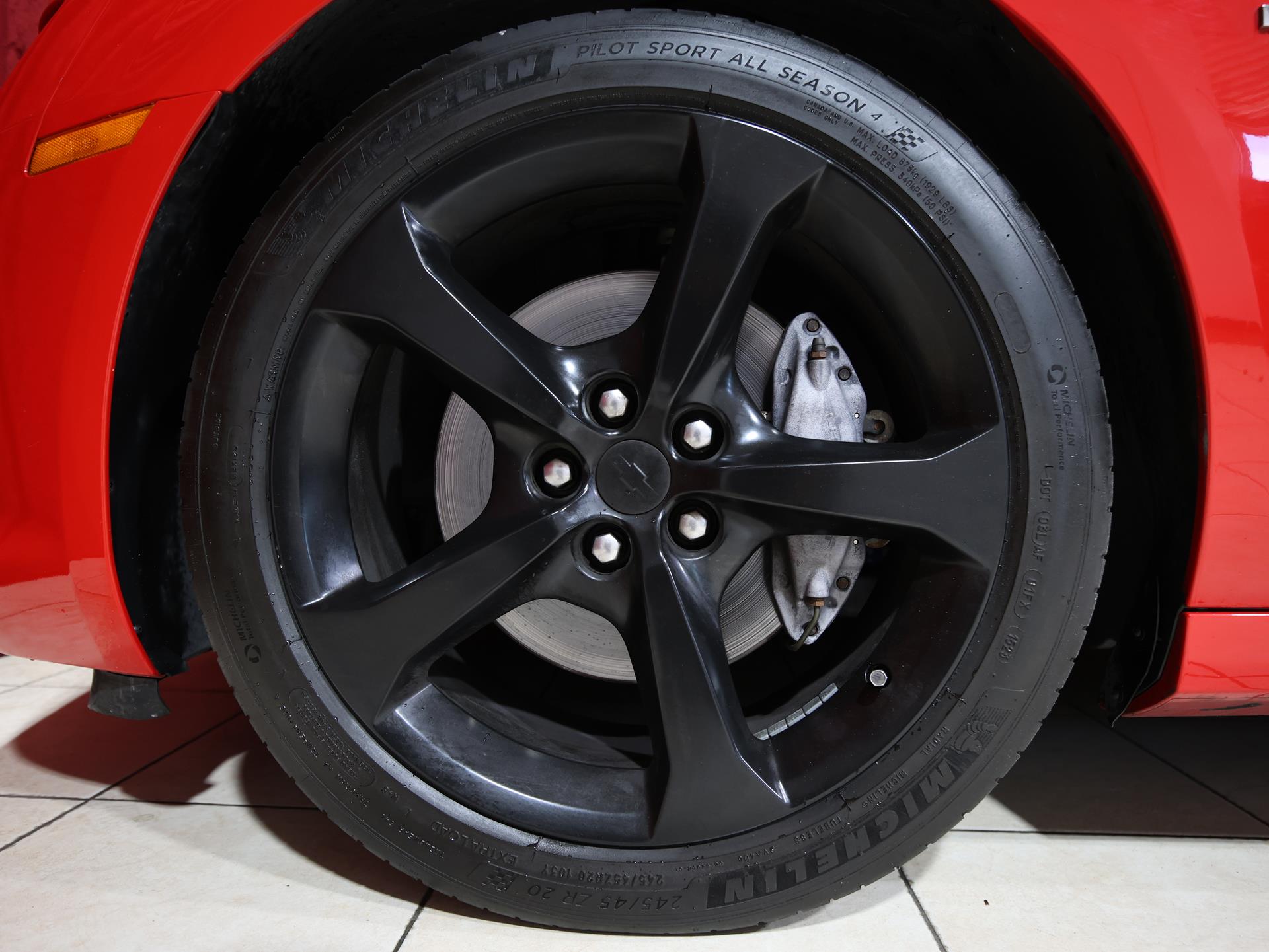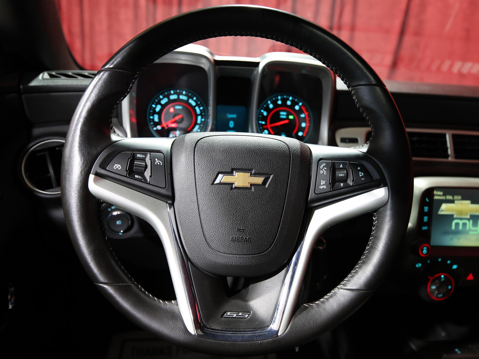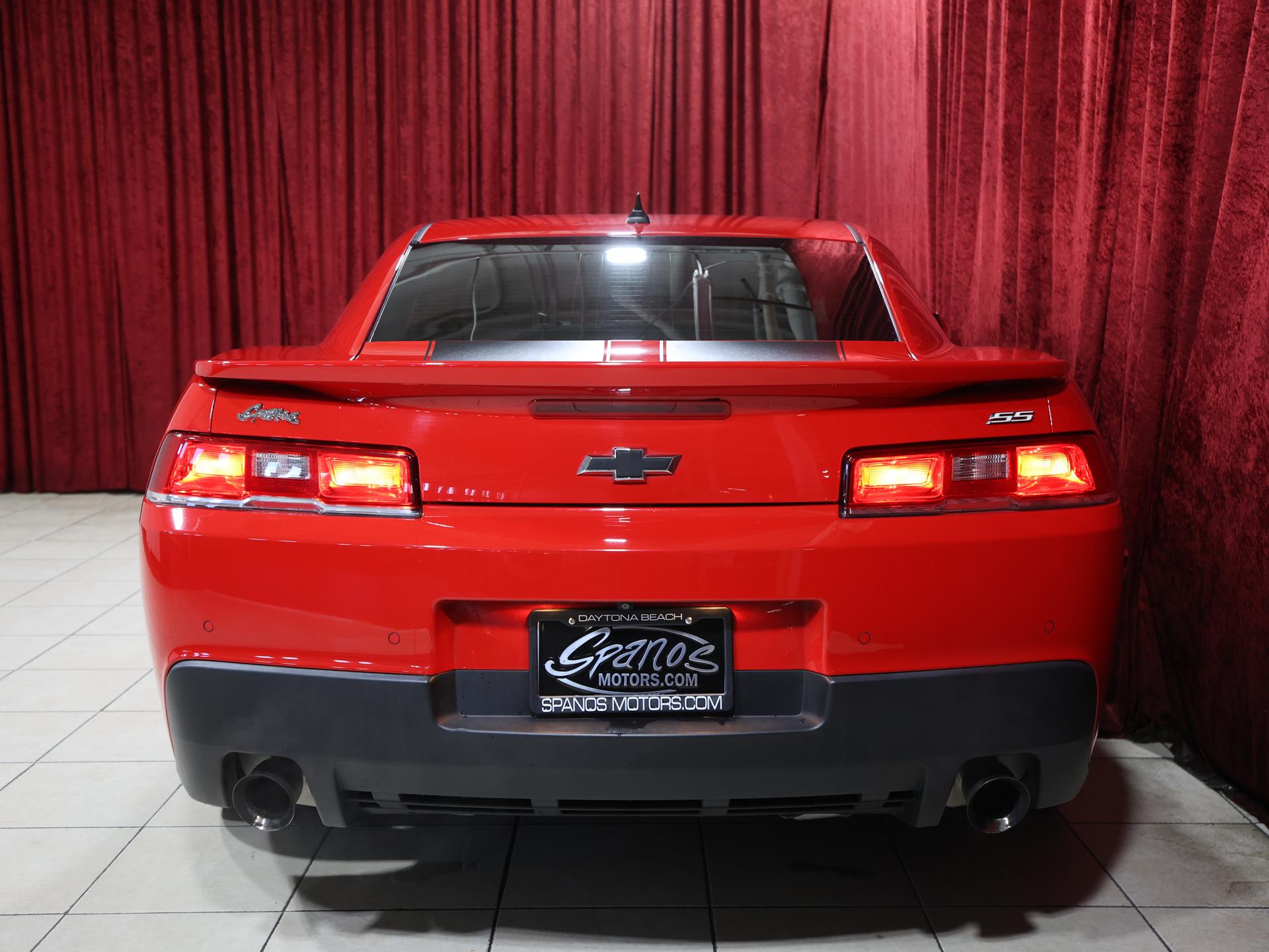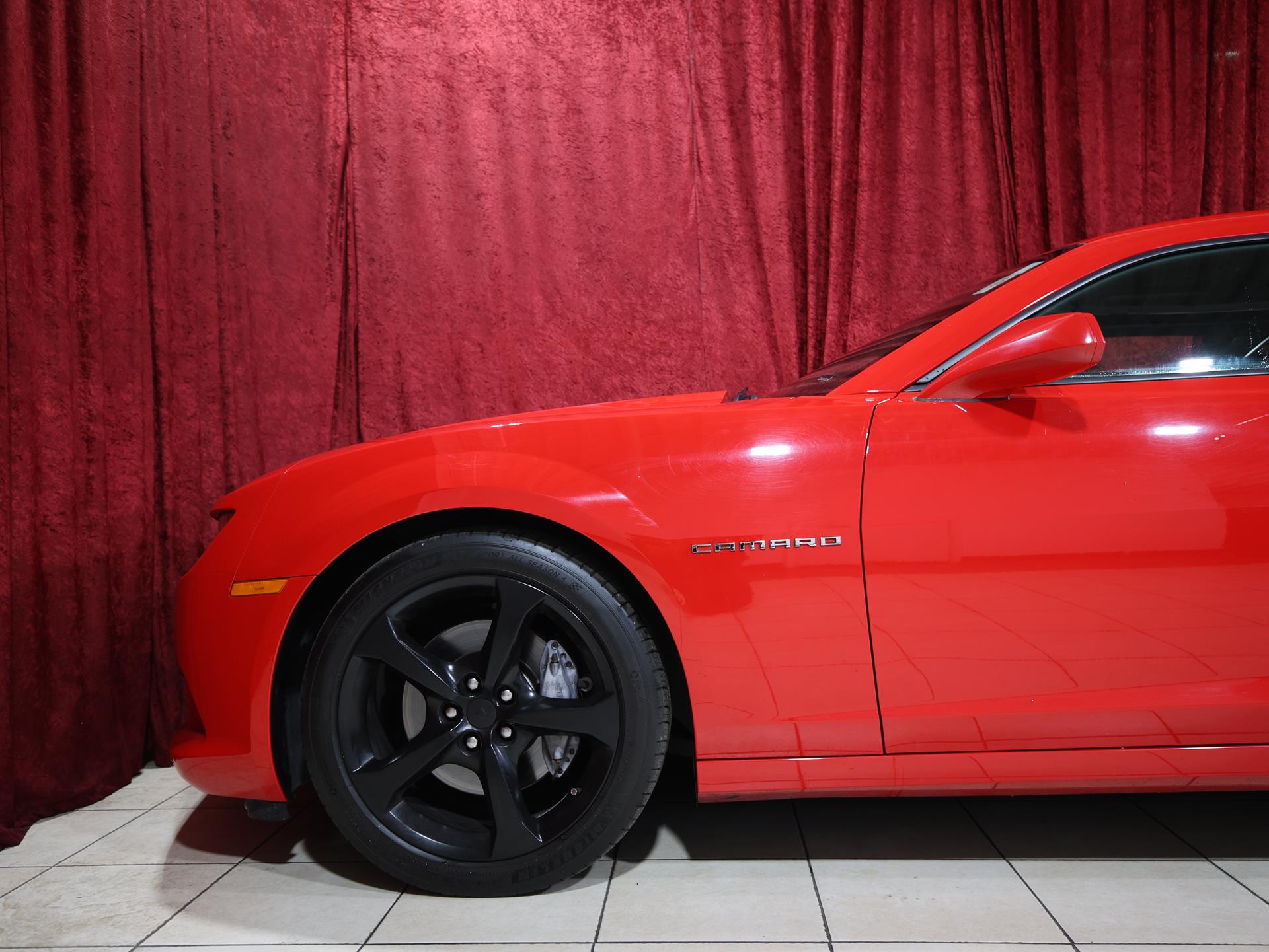 This 2014 Chevrolet Camaro SS Coupe with the 1SS package is a true driver’s car in every sense. Finished in Red Hot, it makes a bold first impression, made even more aggressive by the Black Rally Stripe Package that underscores its muscle-bound stance and performance DNA.