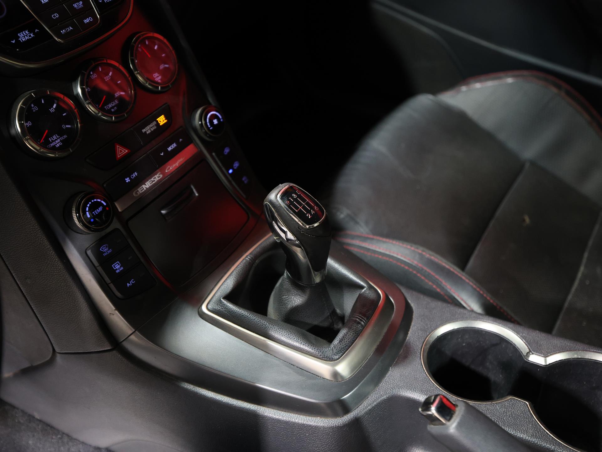 Equipped with Option Group 01, this Genesis Coupe retains its clean, performance-first configuration, while subtle additions like wheel locks, a cargo net, and a first aid kit provide practical touches without taking away from its focused character.