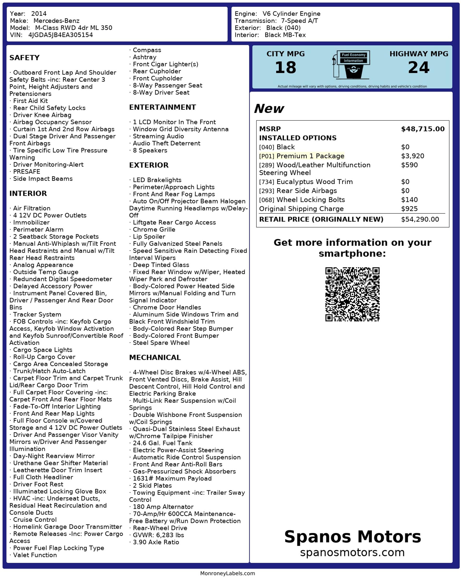 Standard ML 350 equipment also includes dual-zone automatic climate control, power front seats, Bluetooth connectivity, and Mercedes-Benz’s comprehensive stability and traction control systems.