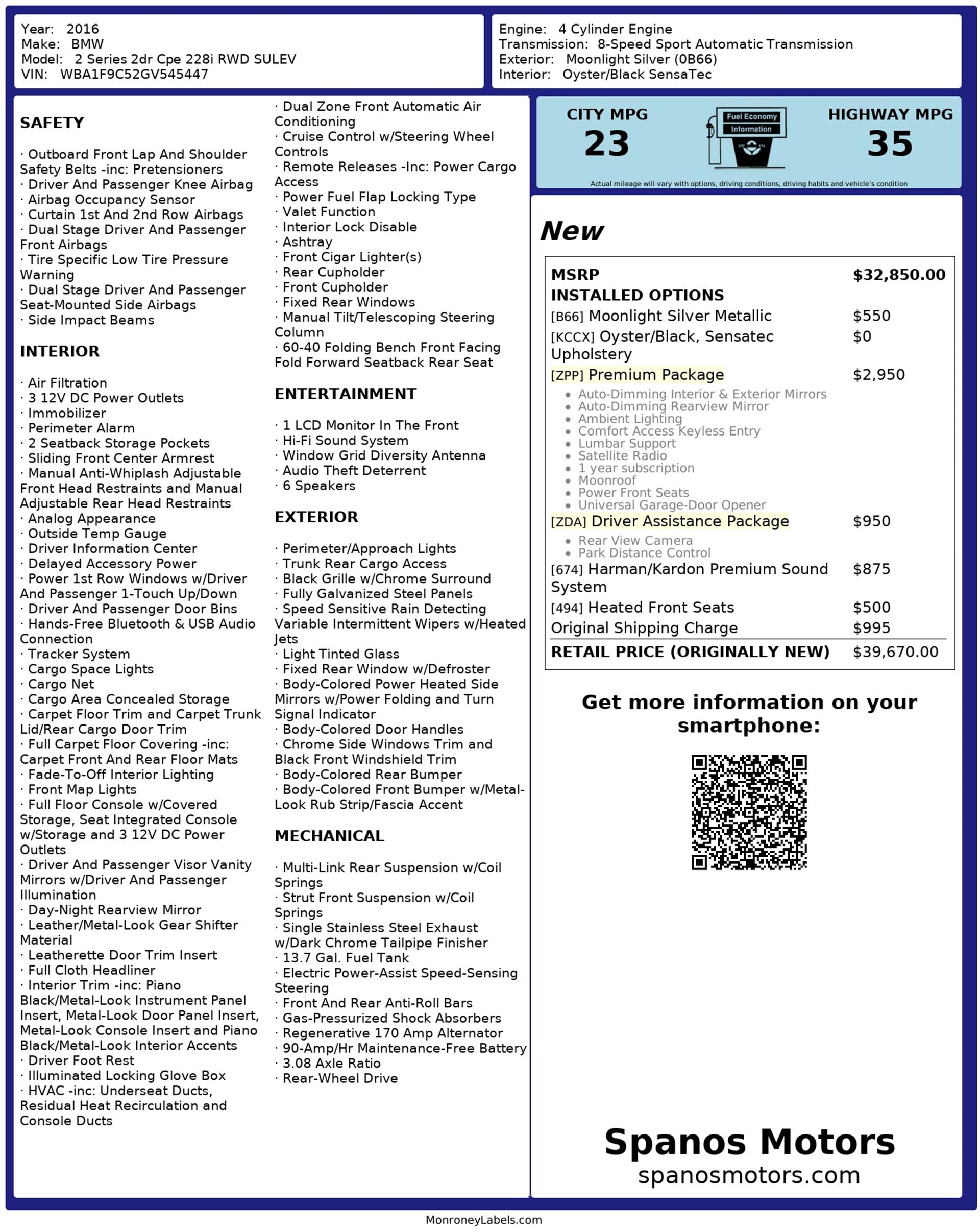 With its combination of sporty rear-wheel-drive performance, premium interior features, and advanced driver conveniences, the 2016 BMW 228i Coupe offers an engaging driving experience wrapped in a stylish and well-equipped luxury compact coupe