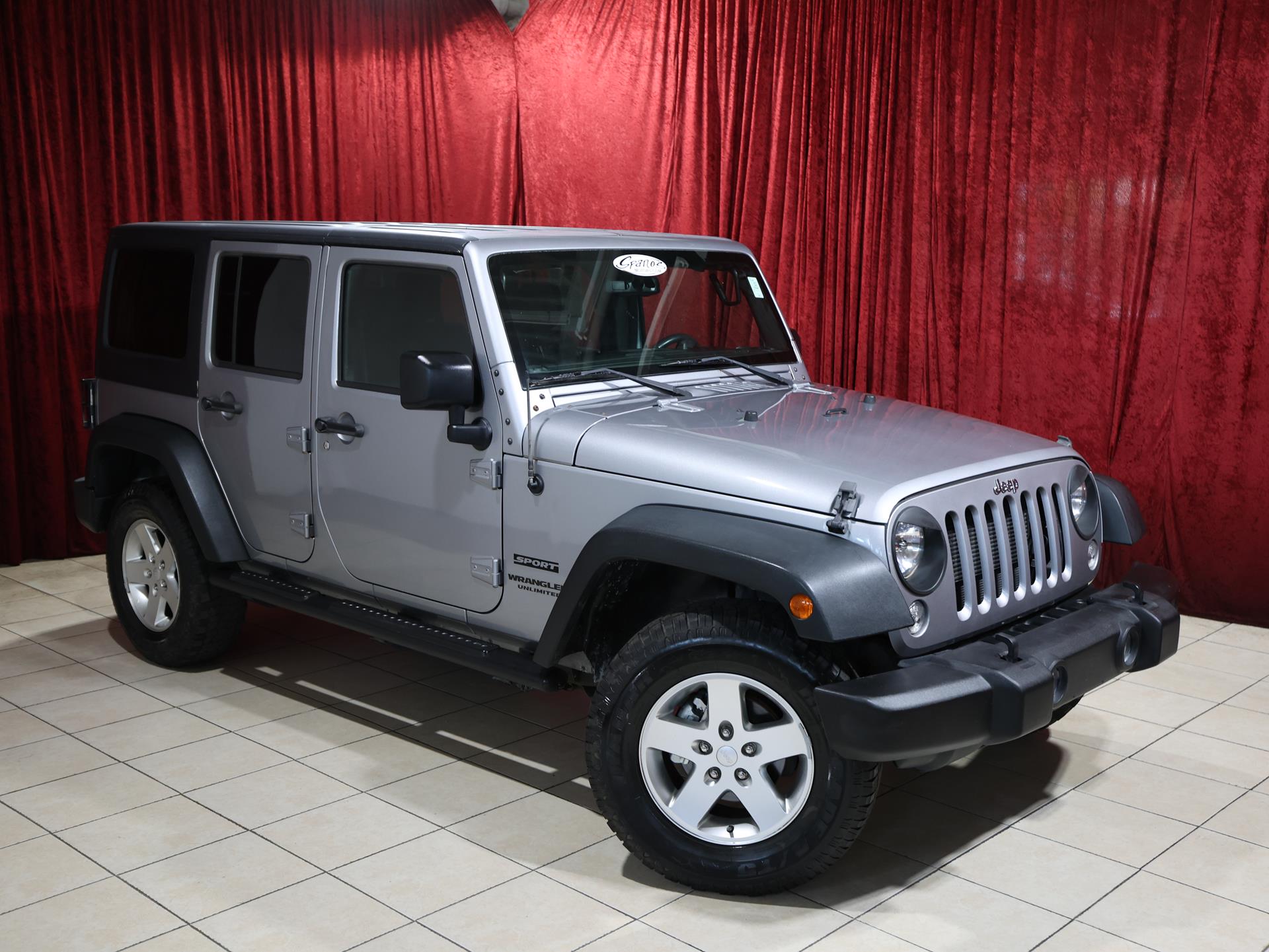 With its unmistakable Billet Silver Metallic exterior and classic black interior, this 2016 Jeep Wrangler Unlimited Sport 4×4 stays true to the Wrangler’s heritage: rugged, functional, and built to go anywhere. Backed by a proven 3.6L V6 and robust 4×4 drivetrain, this Jeep is ready for adventure, whether you’re hitting muddy trails, rocky climbs, or just navigating the daily grind with a sense of freedom.
