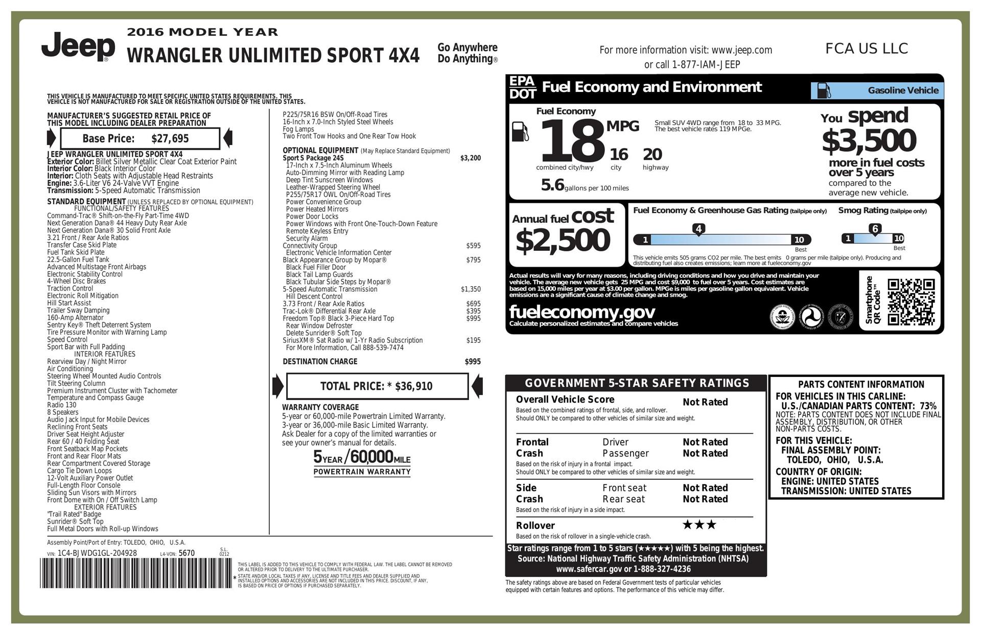 With its iconic design, durable build, and trail-ready features, this 2016 Jeep Wrangler Unlimited Sport 4×4 isn’t just an SUV—it’s a passport to adventure, freedom, and the open road.