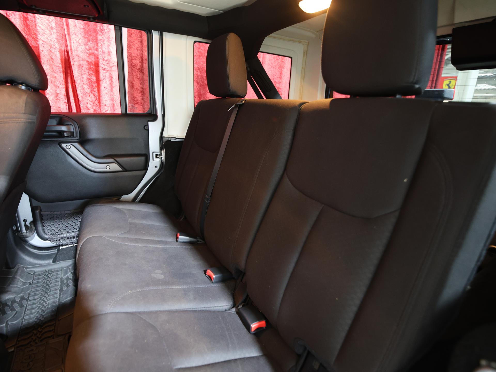 Inside, the Wrangler keeps things purposeful with steering wheel audio controls, Uconnect connectivity, SiriusXM radio prep, and rear folding seats. Practical touches like a rear window defroster and wiper ensure year-round usability.