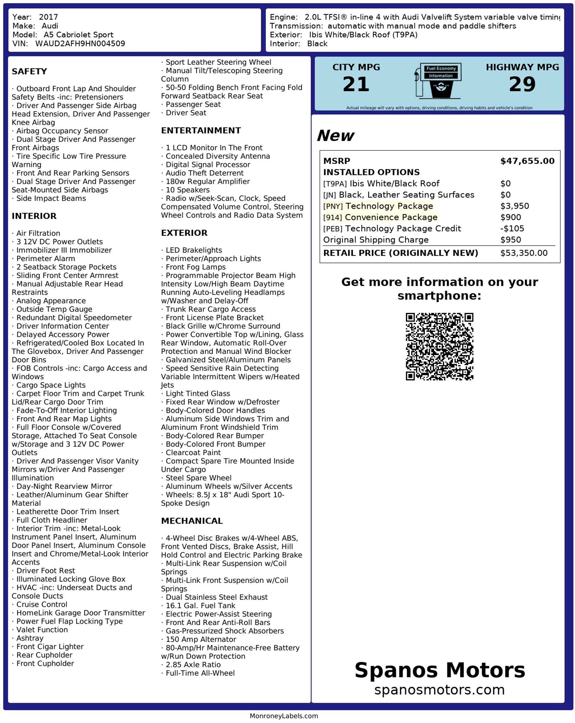 Blending top-down driving enjoyment, advanced technology, and refined luxury, the 2017 Audi A5 Cabriolet Sport offers a driving experience that is both relaxing and engaging—perfect for those who want style, comfort, and performance in one elegant package.