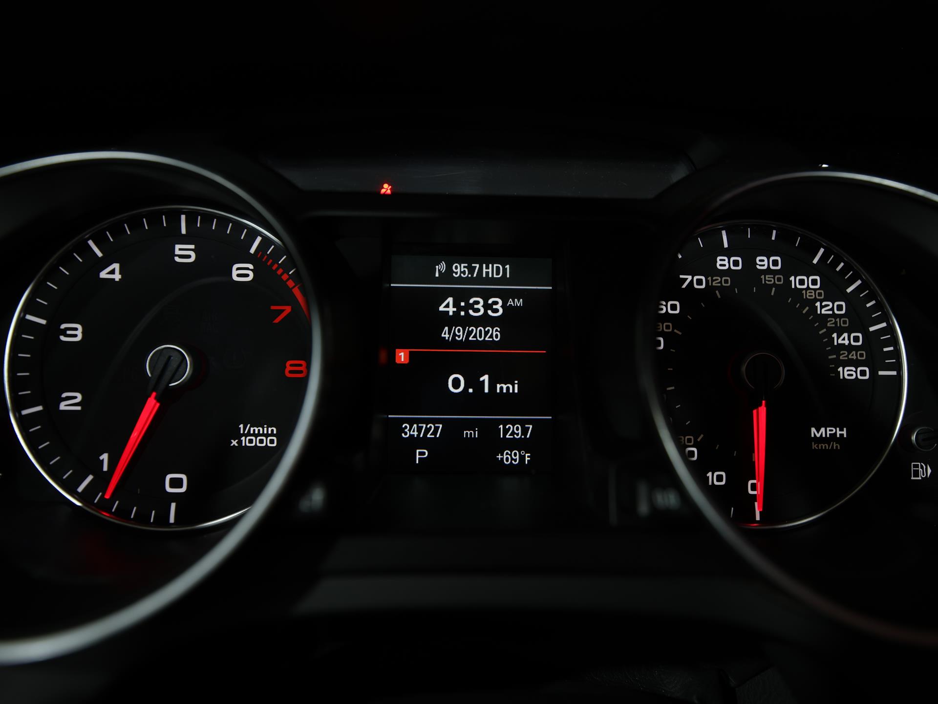 Inside, the cabin is wrapped in black leather seating surfaces, creating a refined and driver-focused environment. The Convenience Package enhances comfort with power heated front seats with memory, Audi advanced key with keyless access, and auto-dimming mirrors, adding everyday usability to the luxury experience.