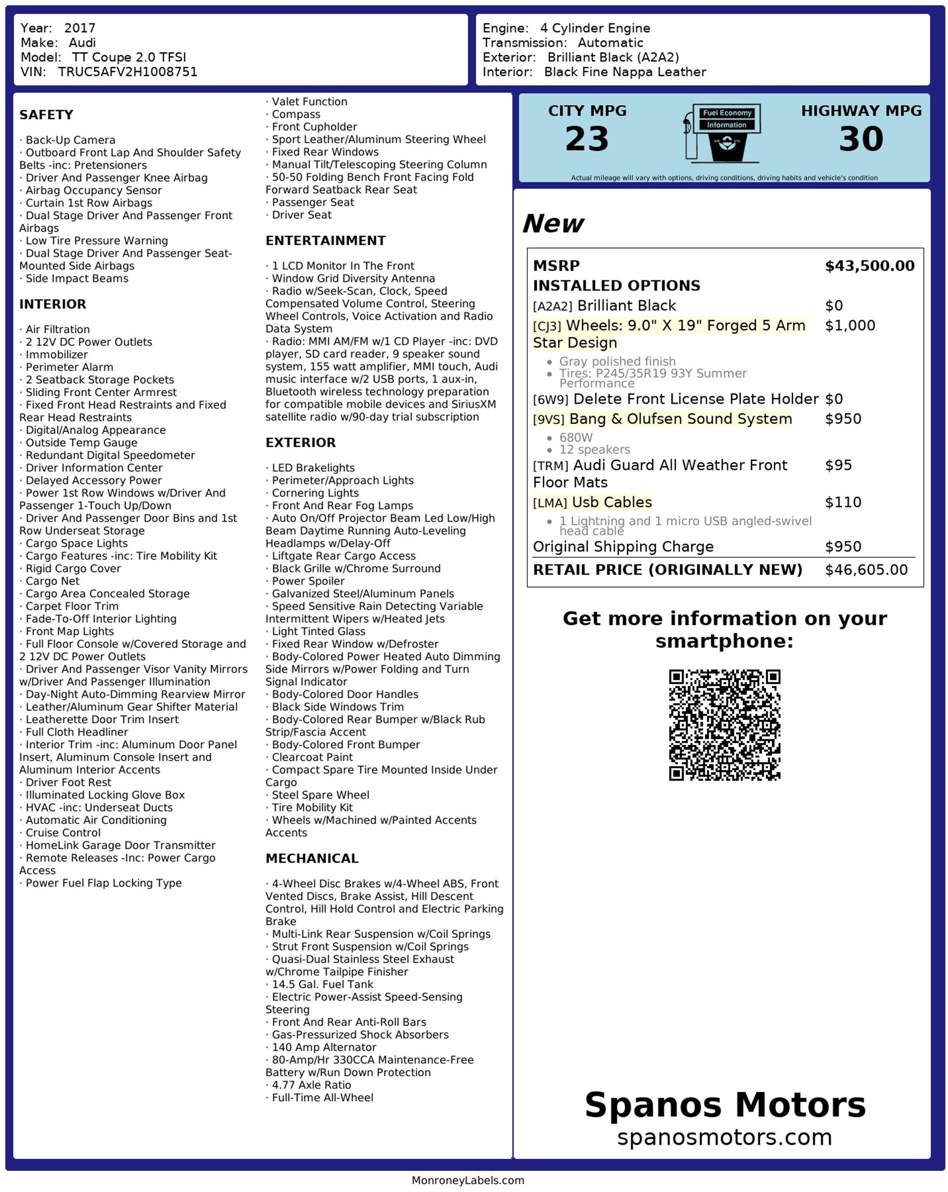 The 2017 TT Coupe takes Audi’s legendary engineering and injects it with style, technology, and pure driving enjoyment.