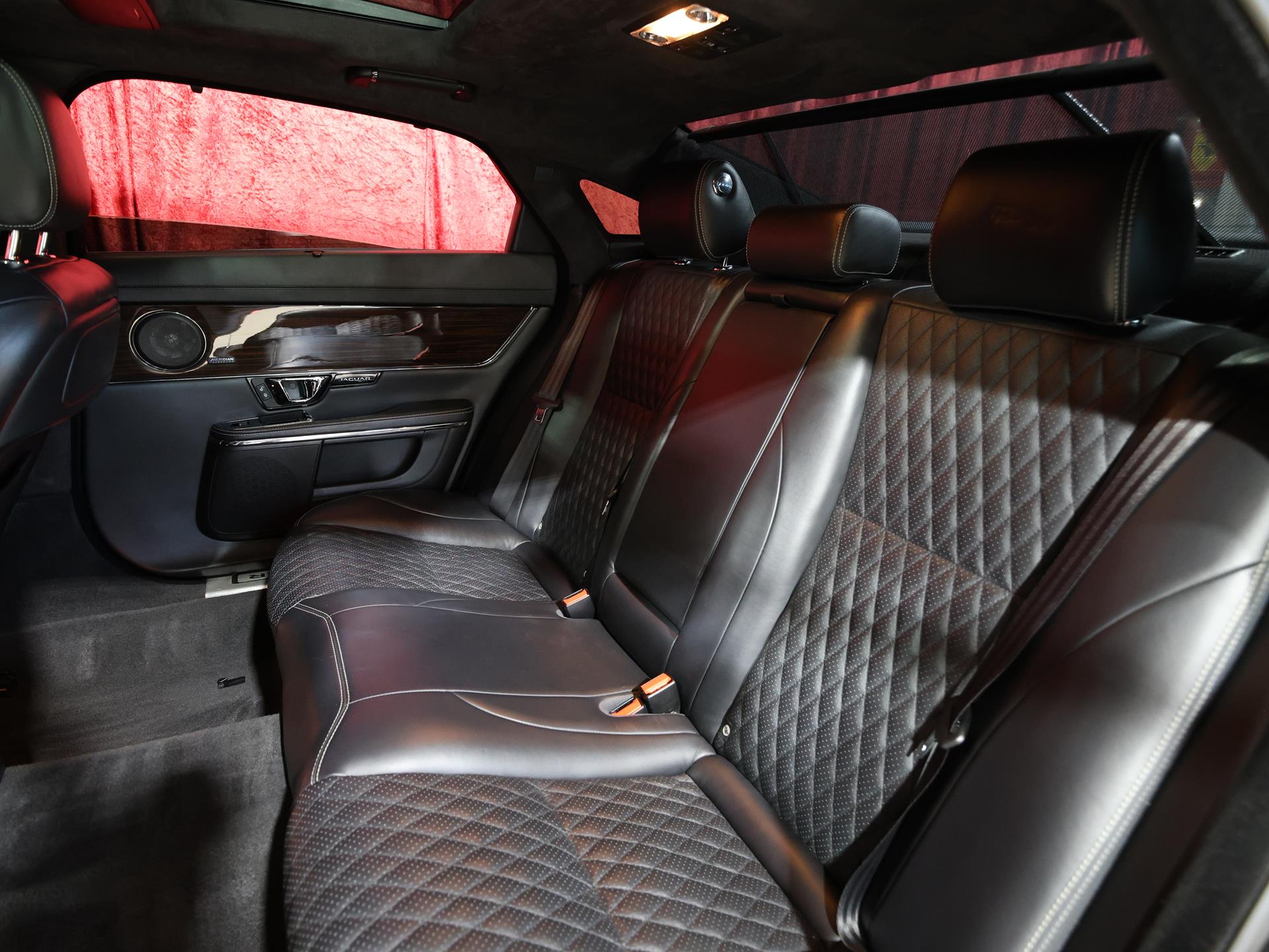The cabin is accented with Figured Ebony veneer trim, adding deep, polished wood tones that balance the soft leathers and modern metallics throughout. Every surface, texture, and detail reflects Jaguar’s commitment to understated opulence.