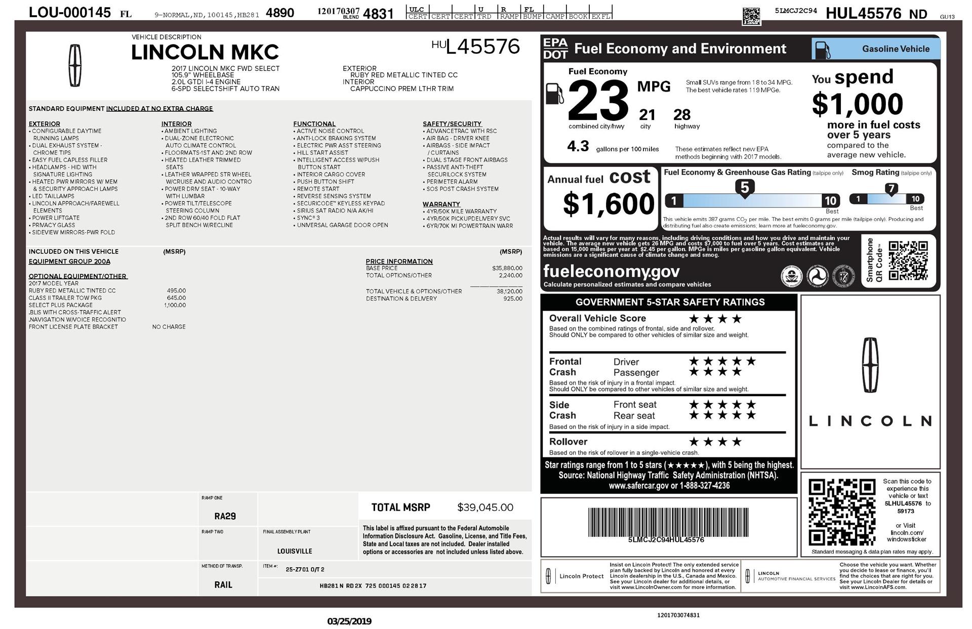 Finished in Ruby Red Metallic Tinted Clearcoat over a Cappuccino premium leather interior, this 2017 Lincoln MKC Select FWD delivers a refined balance of comfort, technology, and understated luxury.