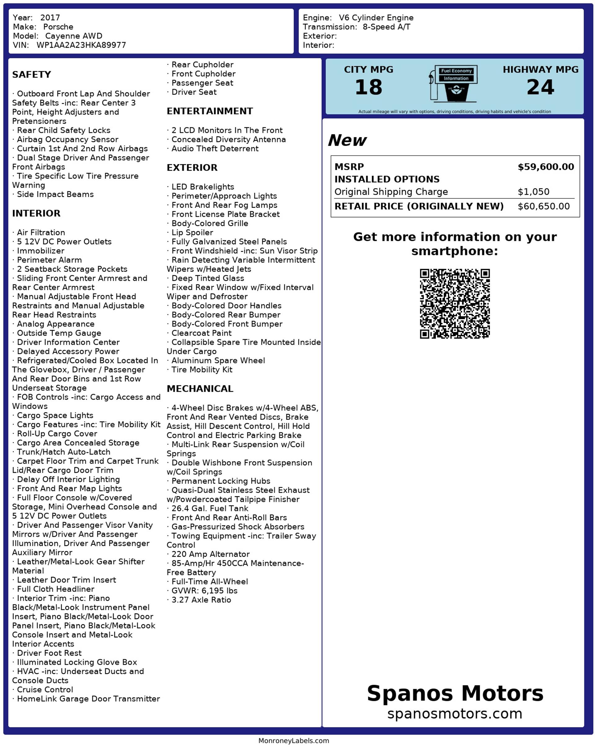 The 2017 Porsche Cayenne AWD combines Porsche performance with everyday versatility, delivering a luxury SUV that’s as dynamic as it is refined. Its athletic stance and signature Porsche design cues make a bold first impression, while the cabin surrounds passengers with premium materials, advanced technology, and meticulous craftsmanship.