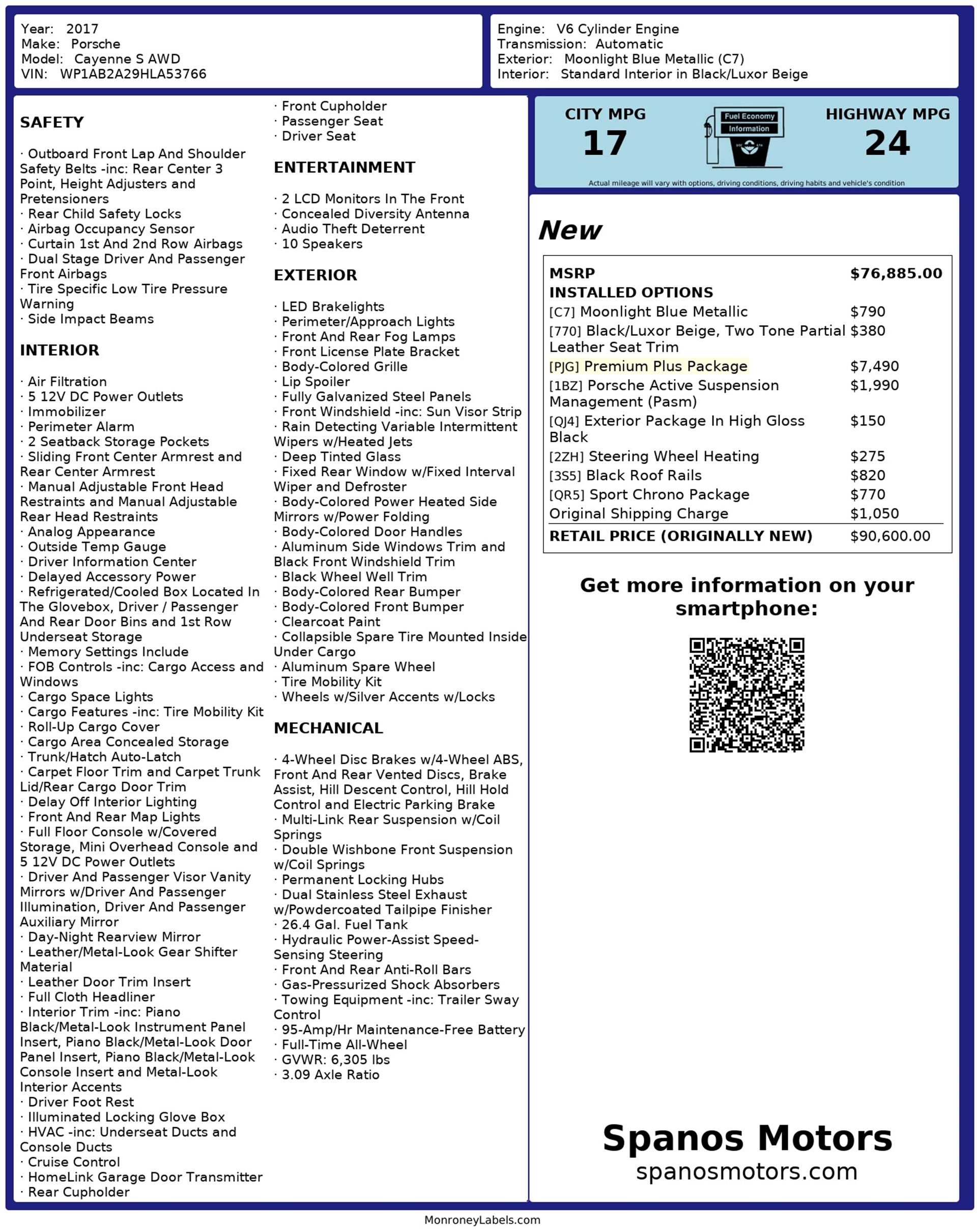 The 2017 Porsche Cayenne S AWD in Moonlight Blue Metallic is where performance meets refinement. Step inside and you’re greeted by a Black and Luxor Beige two-tone leather interior, setting a tone of sophistication and comfort.