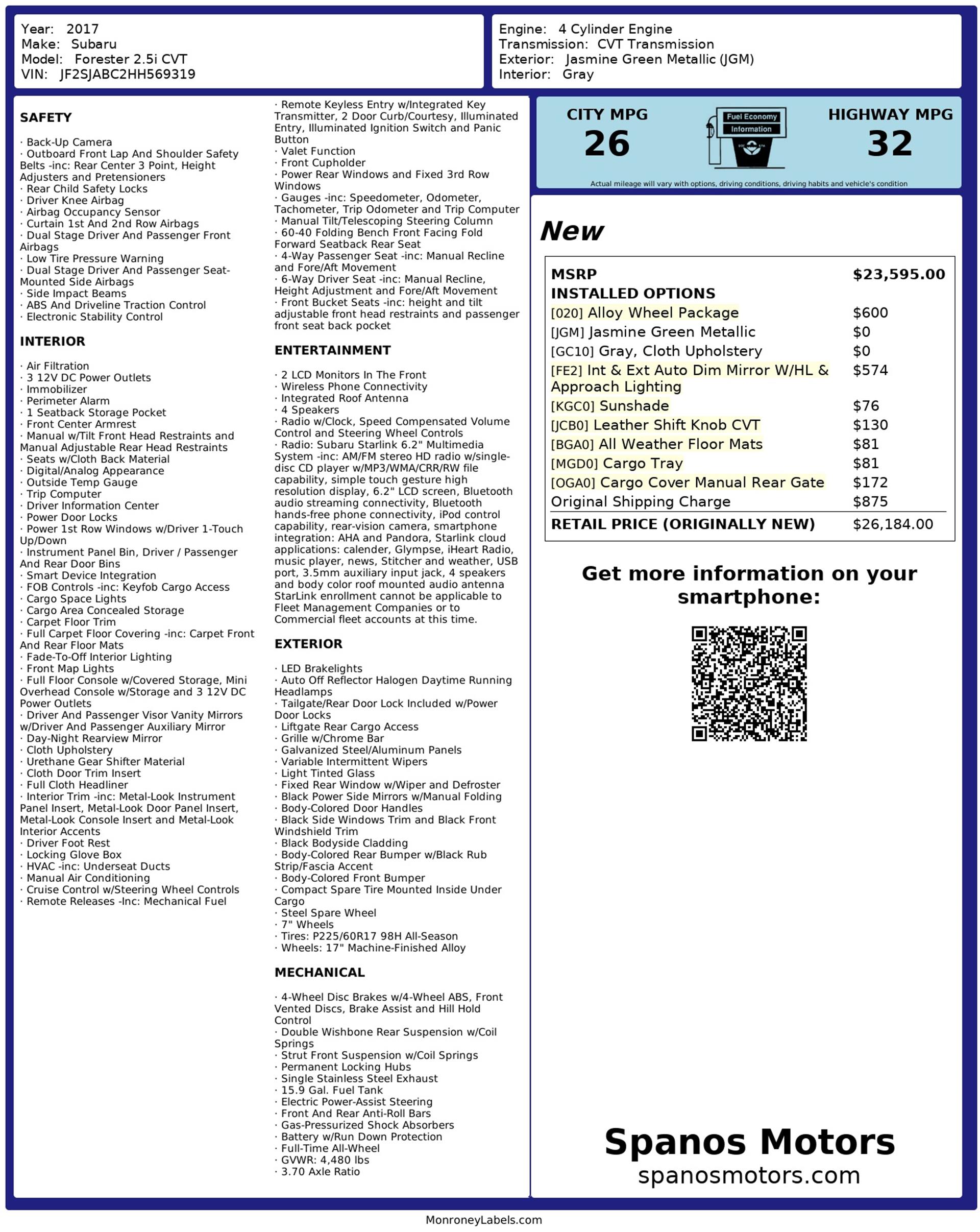 Small details, such as the leather-wrapped shift knob and included sunshade, add subtle comfort and refinement. Overall, this 2017 Subaru Forester 2.5i CVT is a well-equipped and dependable SUV, offering versatility, efficiency, and everyday usability in a package that fits a wide range of lifestyles.