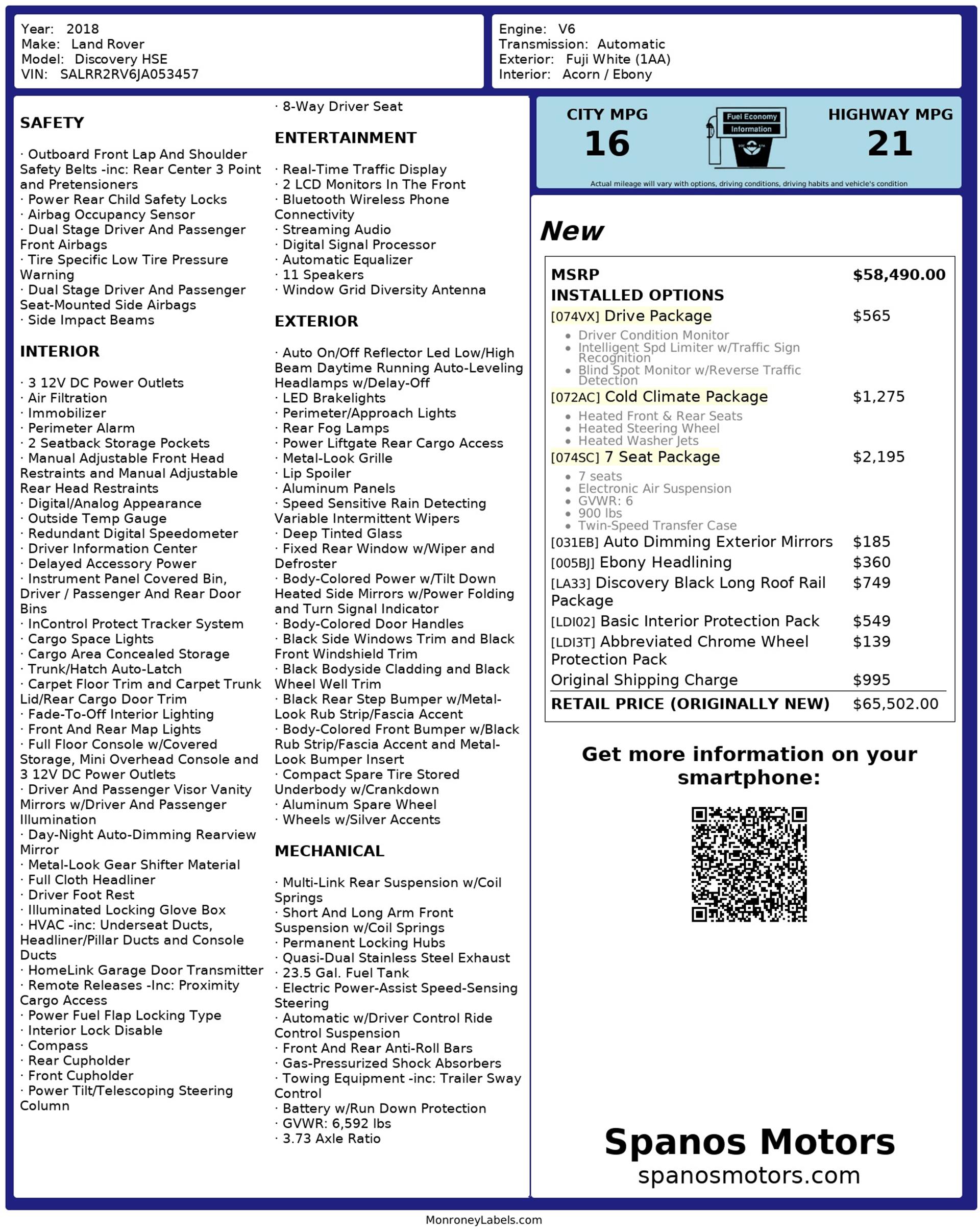 With a strong towing and payload foundation, impressive ride comfort, and genuine off-road credentials, this 2018 Land Rover Discovery HSE delivers a refined yet capable SUV experience—perfect for drivers who demand luxury without sacrificing versatility.