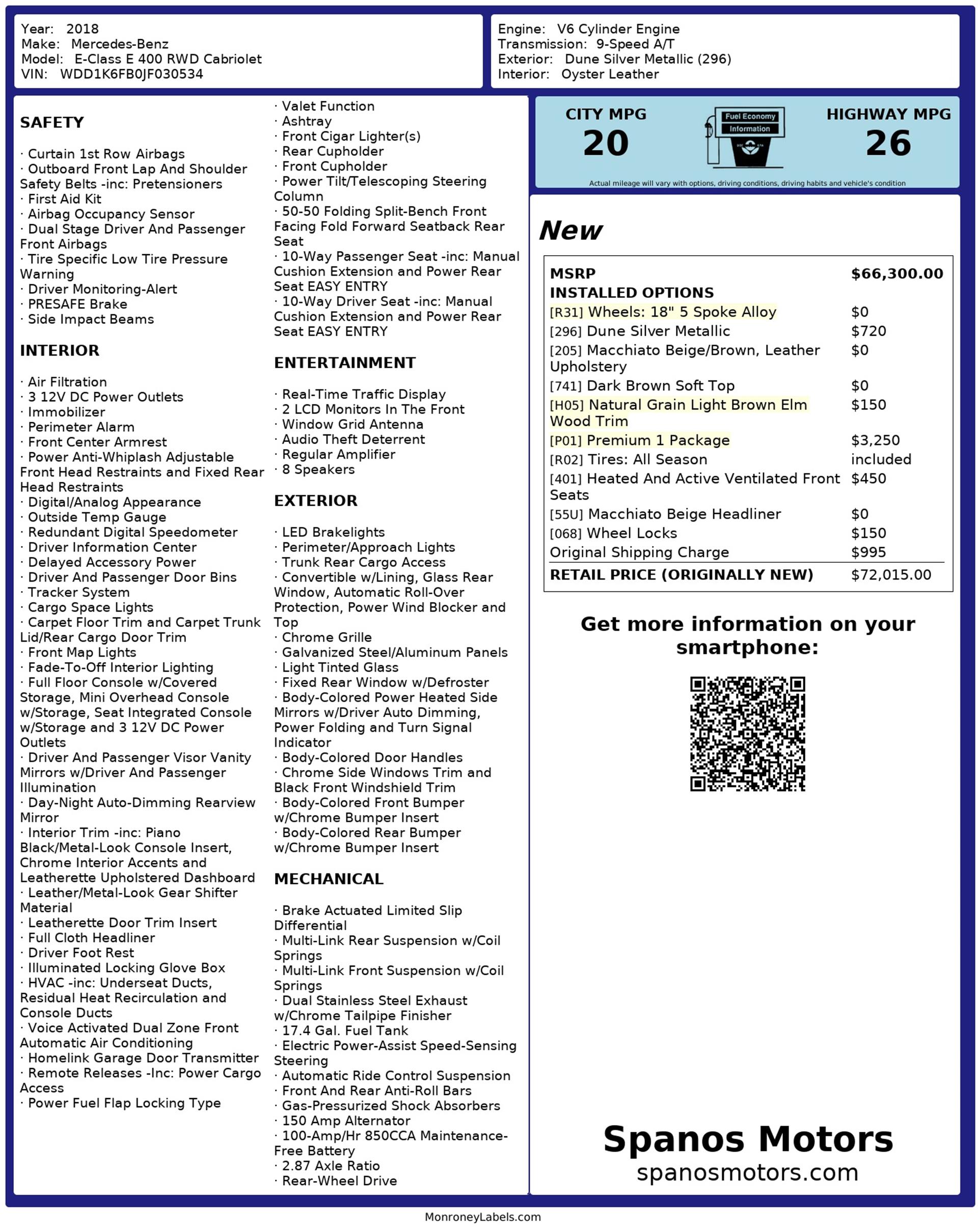 The 2018 Mercedes-Benz E 400 Cabriolet is the definition of open-air luxury, designed to turn every drive into an occasion. Finished in elegant Dune Silver Metallic and paired with a rich dark brown soft top, this E-Class makes a sophisticated statement whether the roof is up or fully retracted.