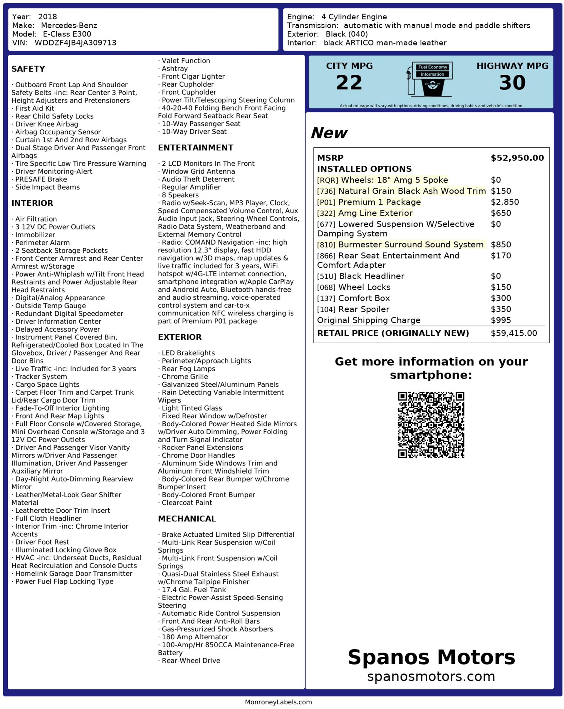 The 2018 Mercedes-Benz E 300 blends timeless elegance with advanced engineering, delivering a luxury sedan that’s both refined and dynamic. Finished with the AMG Line Exterior, this E-Class wears 18-inch AMG 5-spoke wheels, AMG body styling, a rear spoiler, and a lowered sport suspension with selective damping—giving it a confident, athletic stance.