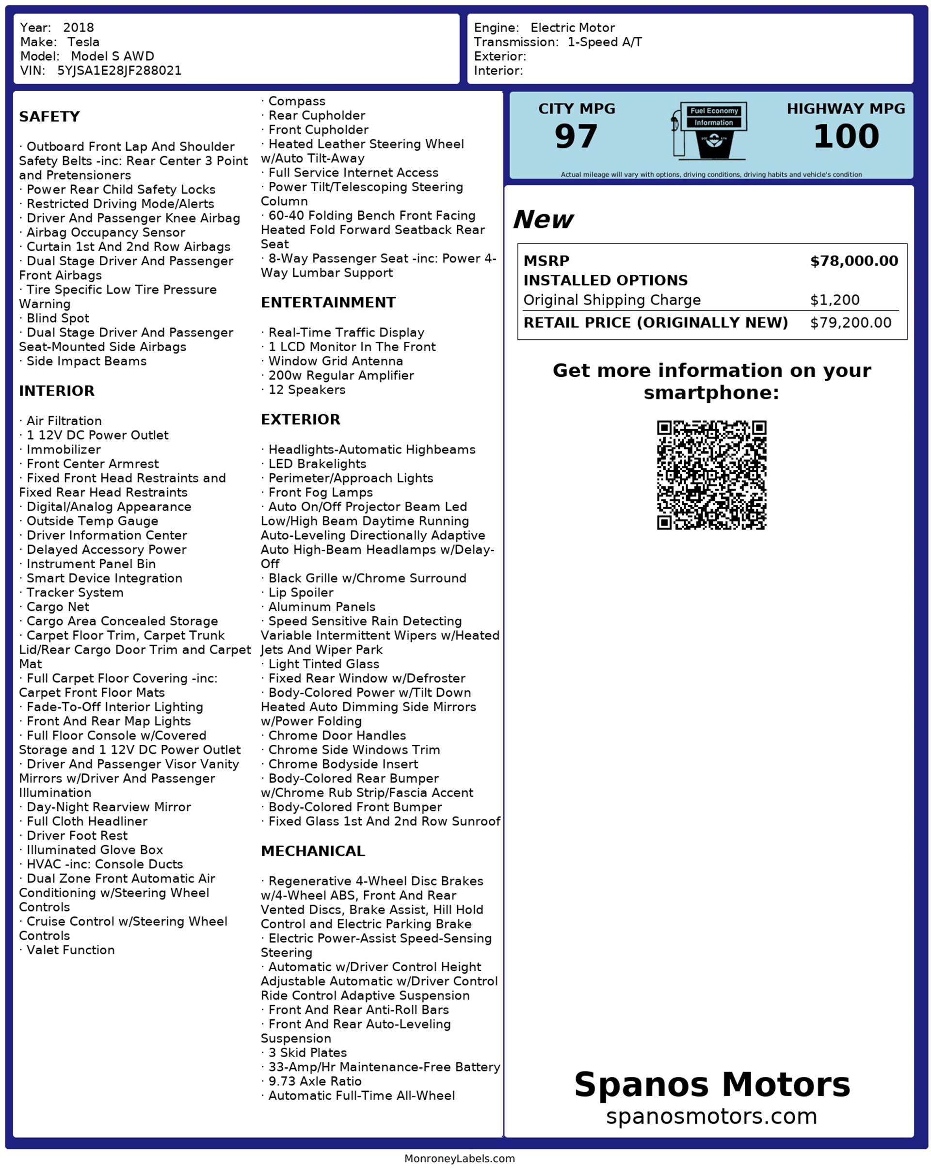 The 2018 Tesla Model S AWD delivers that unmistakable electric confidence the moment it glides forward. Its sleek, sculpted silhouette pairs with dual-motor all-wheel drive to create a drive that feels smooth, silent, and effortlessly quick.