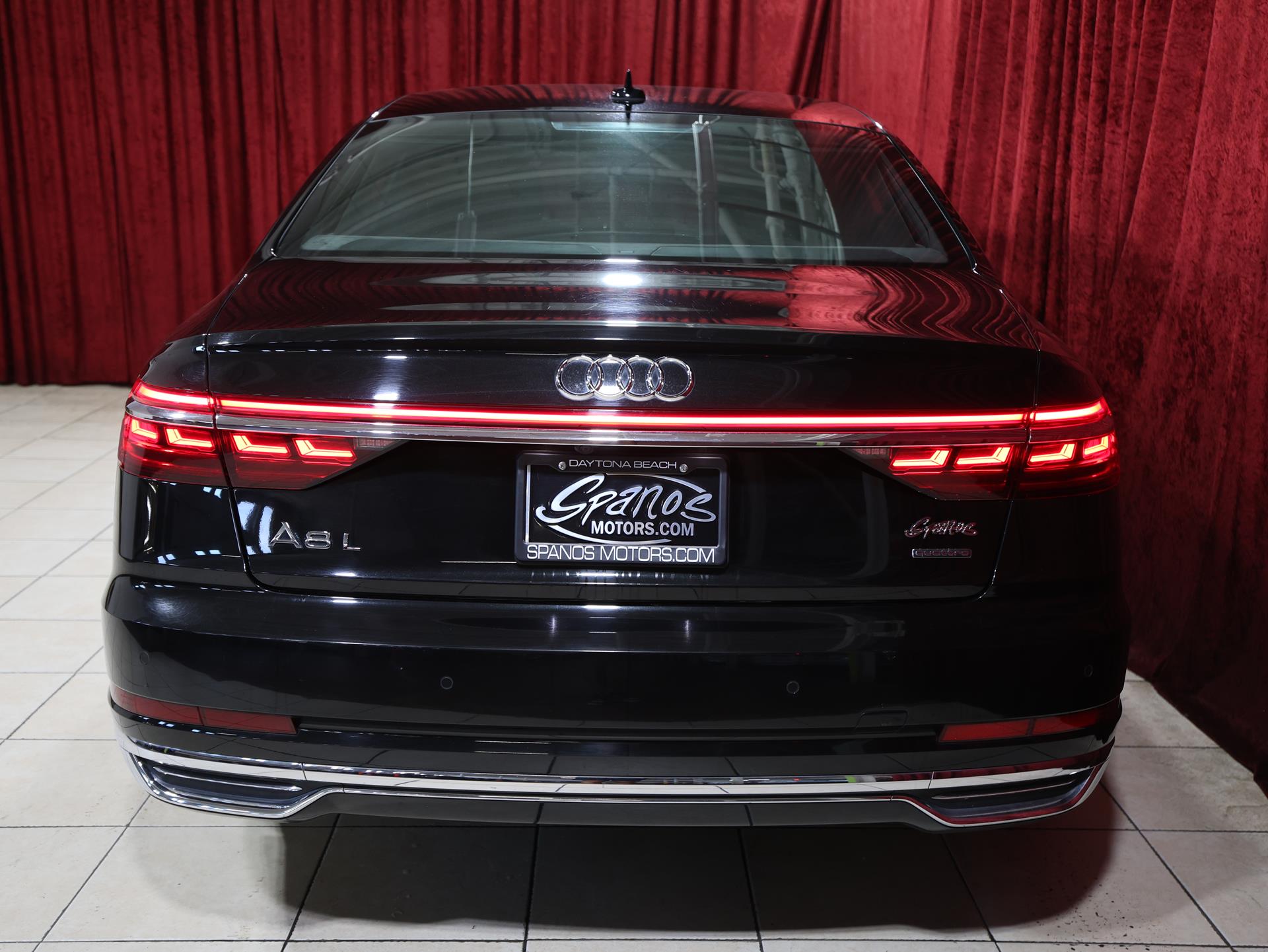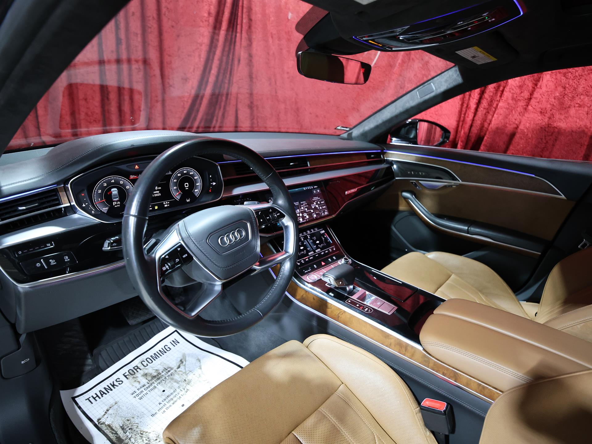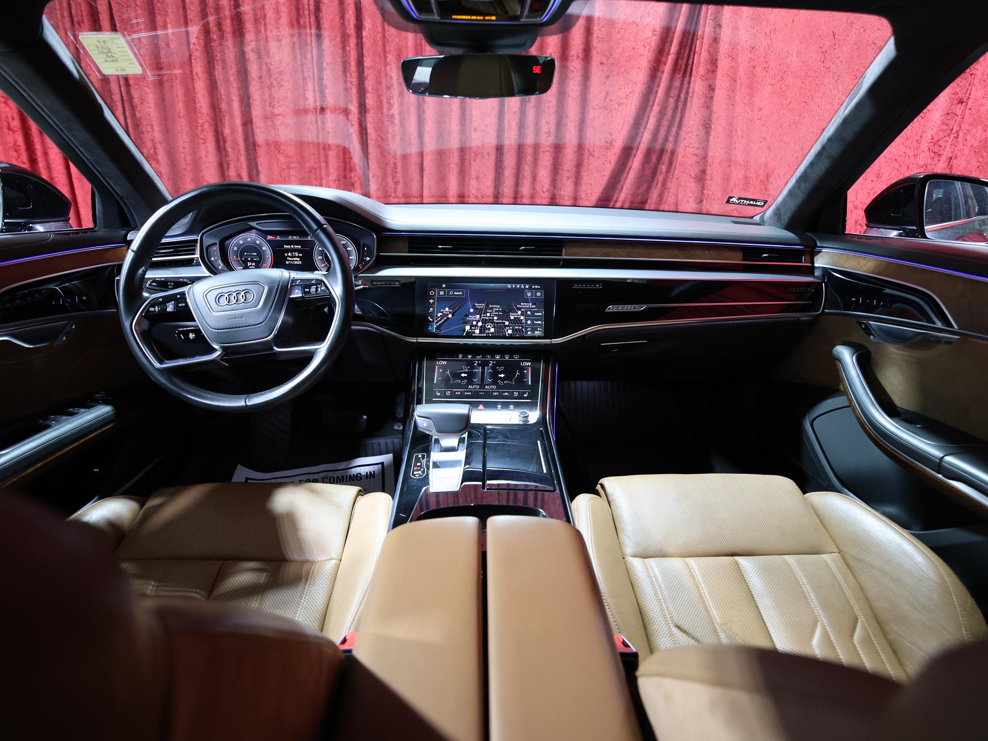 The 2019 Audi A8 L 60 TFSI quattro is where luxury and intelligence meet effortless performance. Finished in Mythos Black Metallic over rich Nutmeg Brown Valcona leather, it sets a commanding presence while offering an interior tailored for absolute comfort.