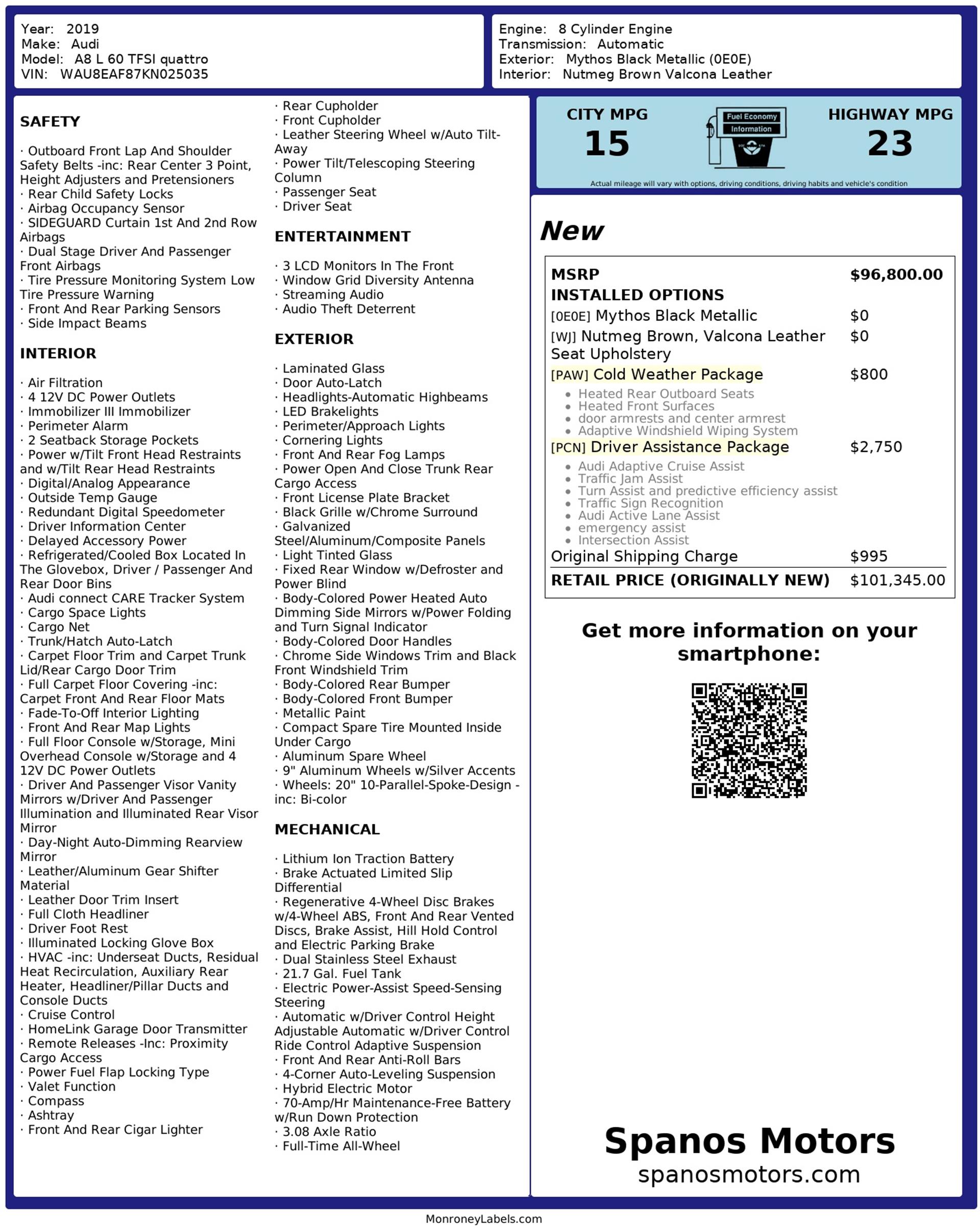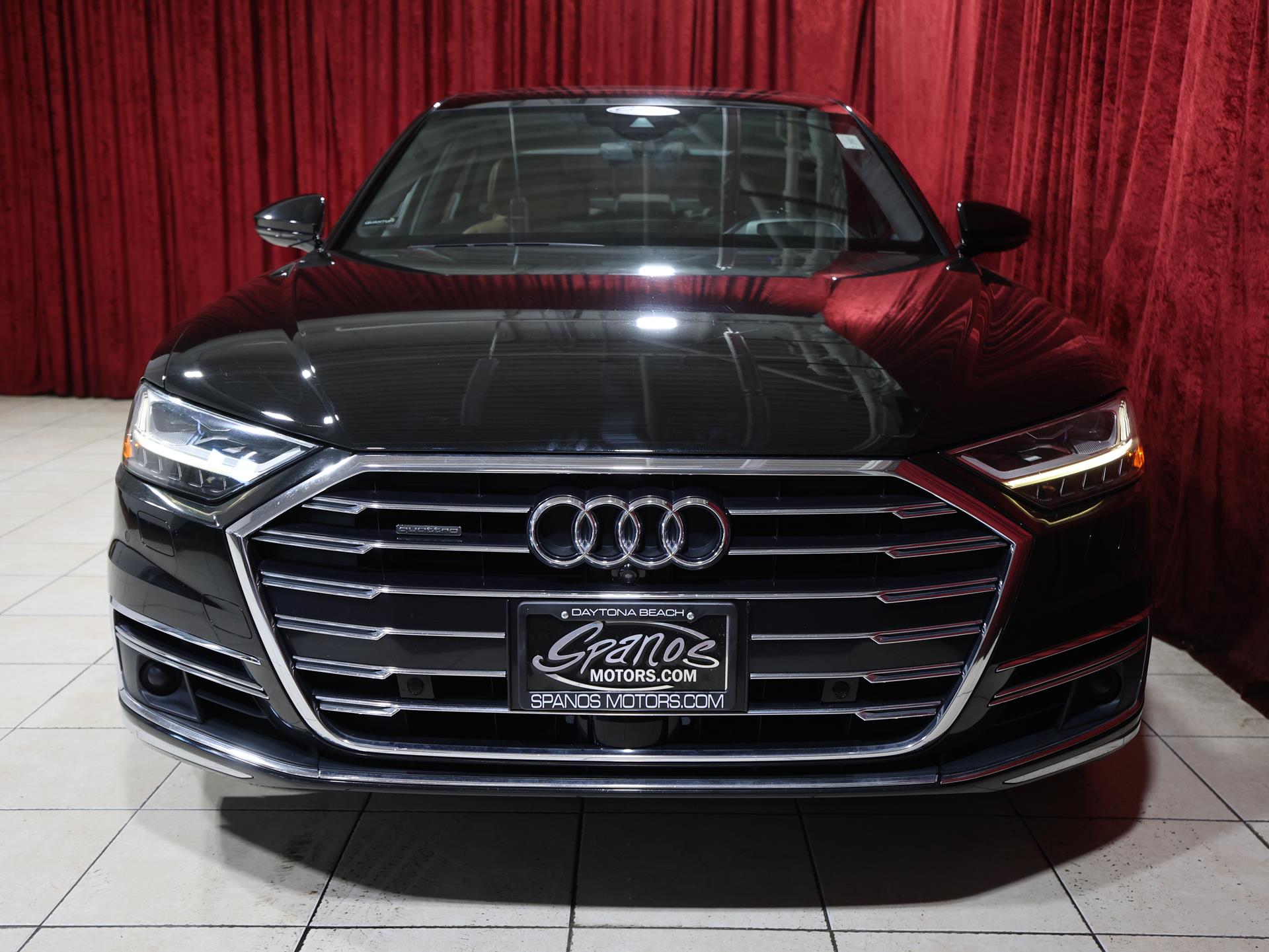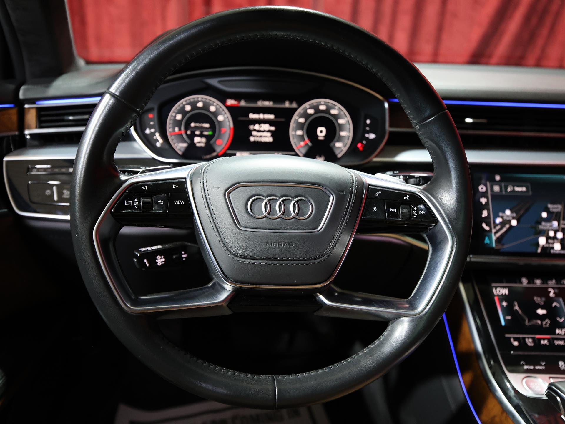 The 2019 Audi A8 L 60 TFSI quattro is where luxury and intelligence meet effortless performance. Finished in Mythos Black Metallic over rich Nutmeg Brown Valcona leather, it sets a commanding presence while offering an interior tailored for absolute comfort.