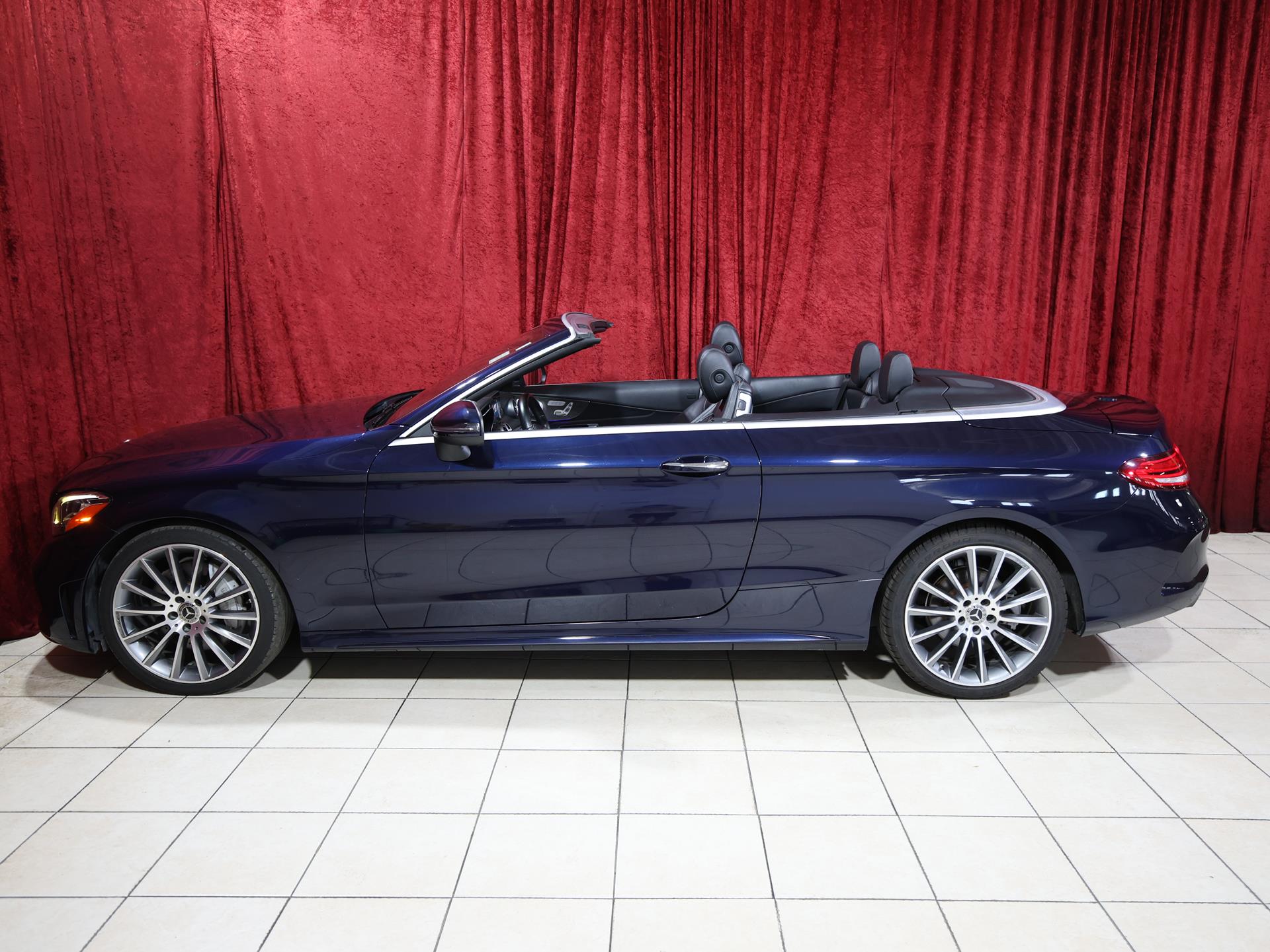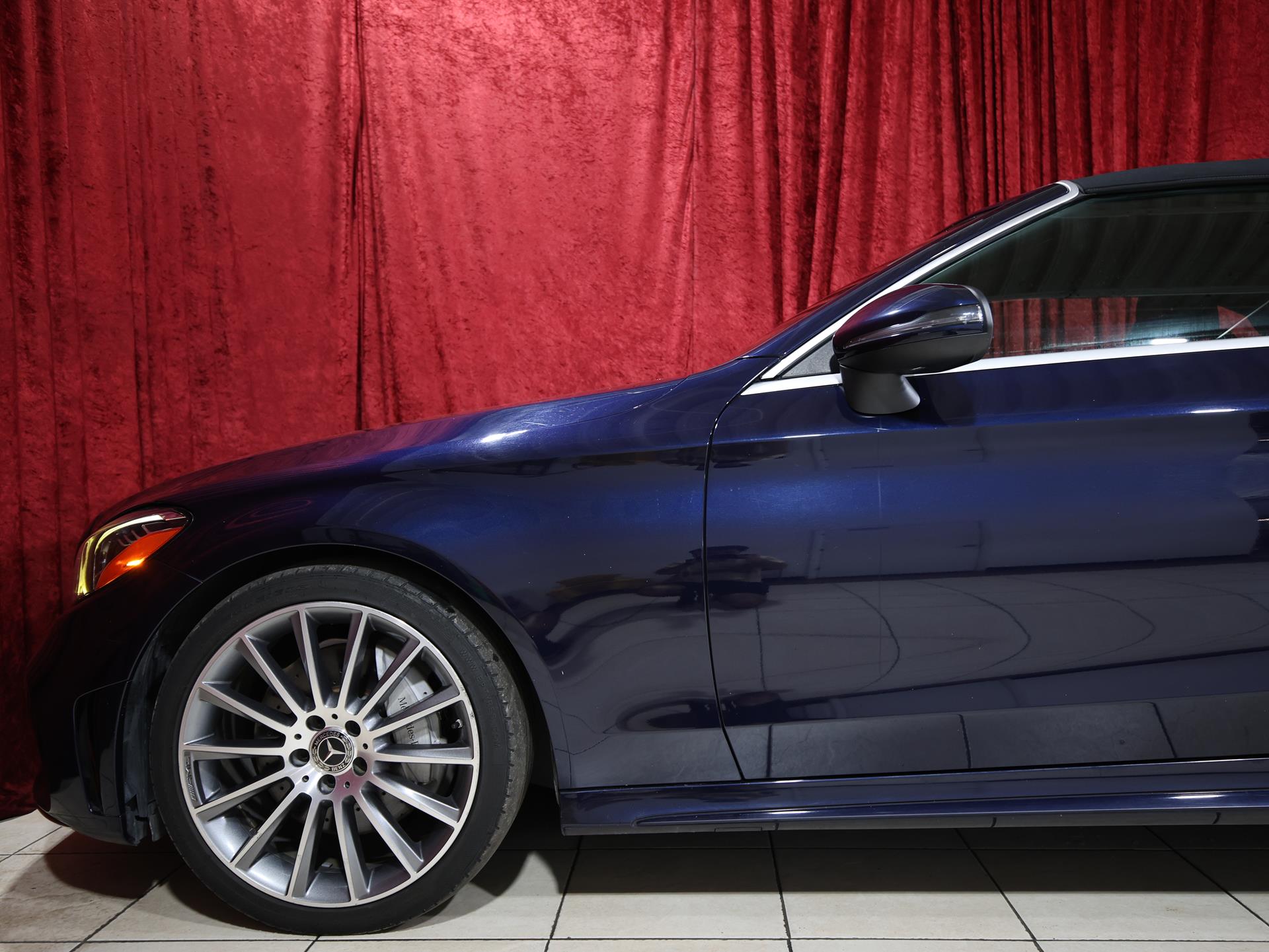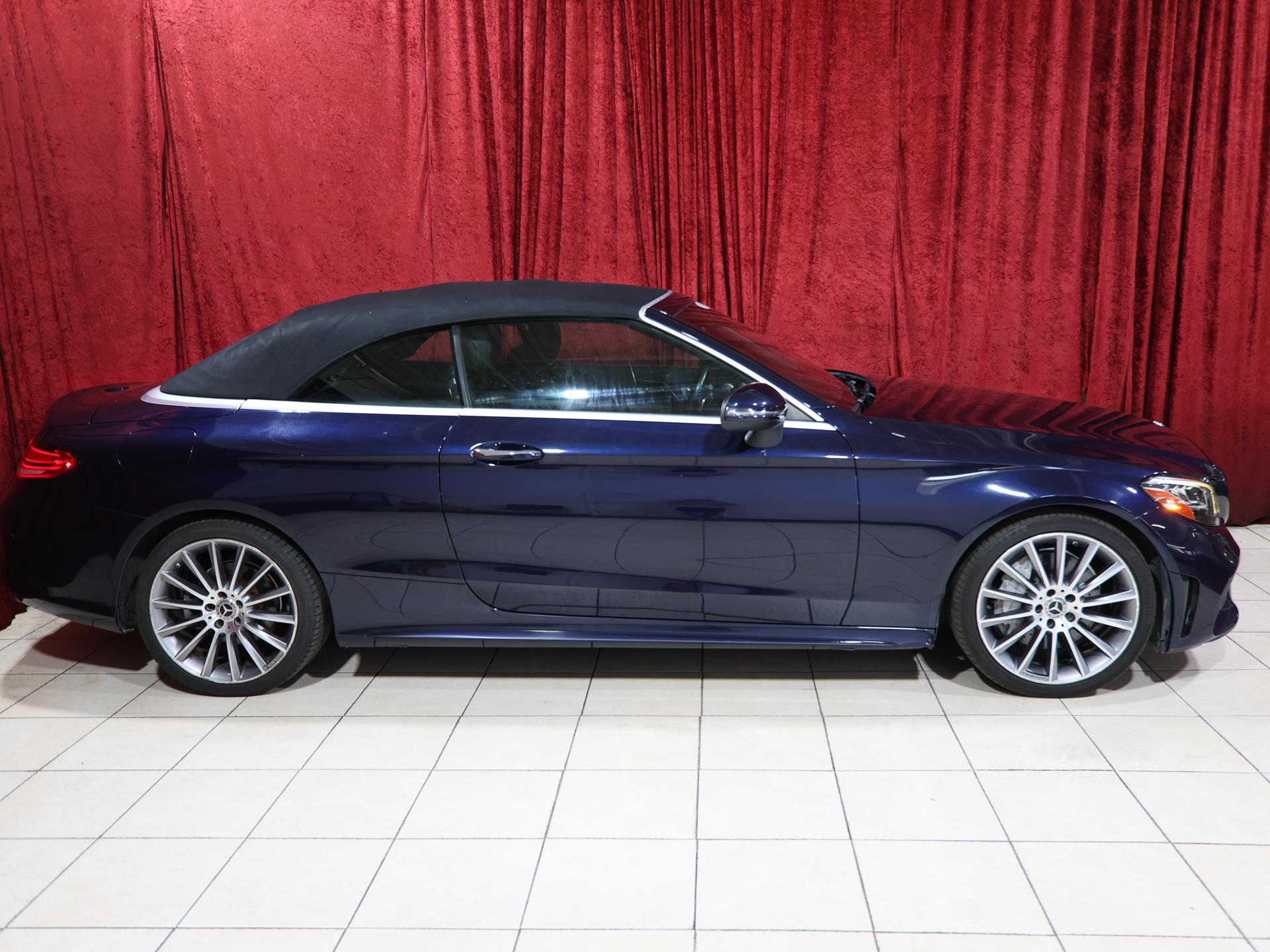 This C 300 Cabriolet blends open-air driving with refined performance and luxury. Finished in Lunar Blue Metallic with a Black fabric headliner and Natural Grain Grey Oak wood trim, it delivers a sleek and sophisticated look.