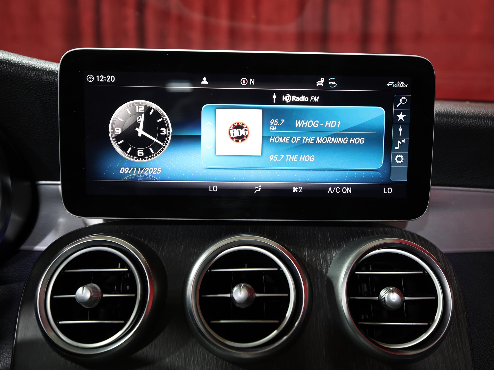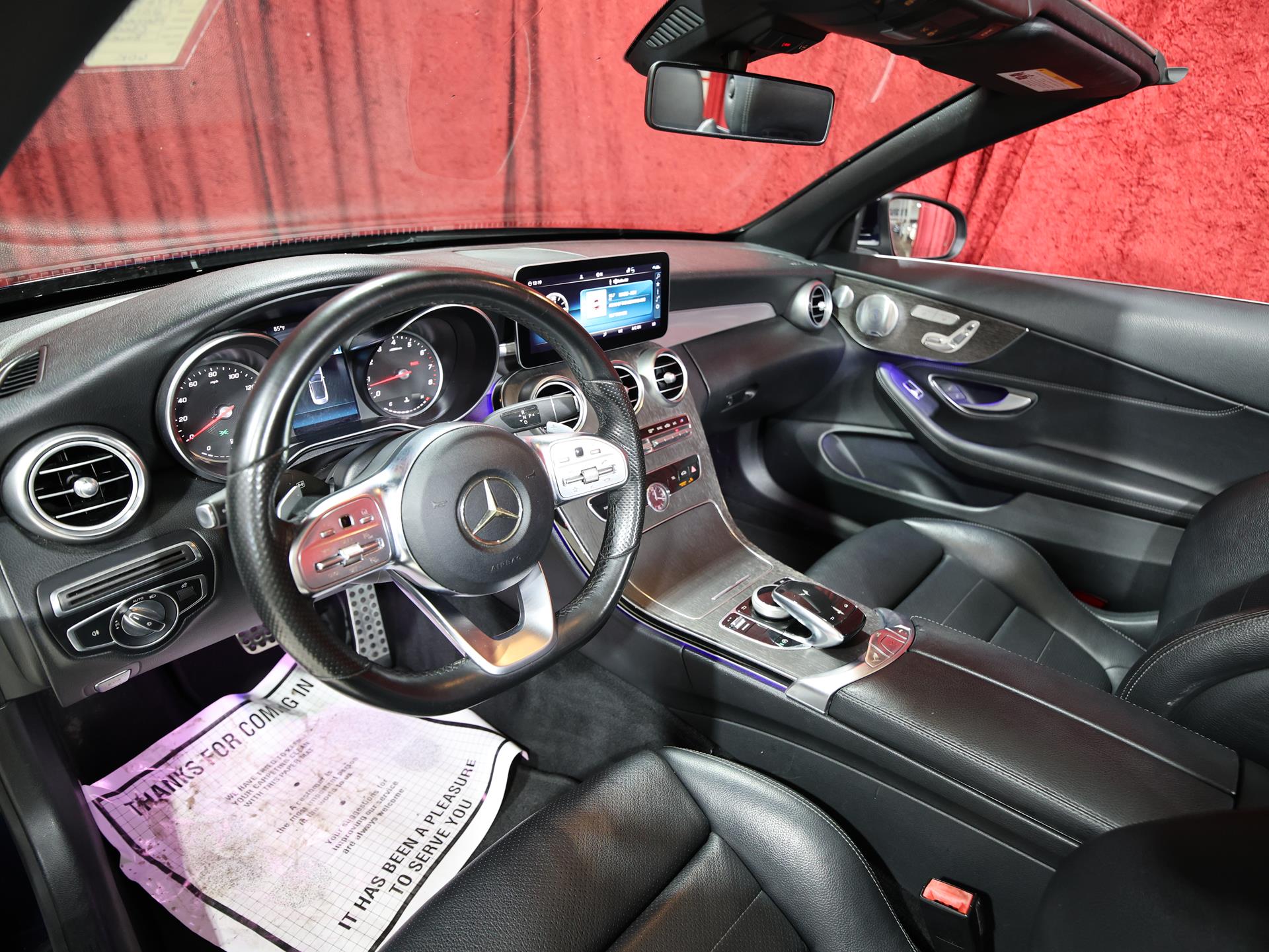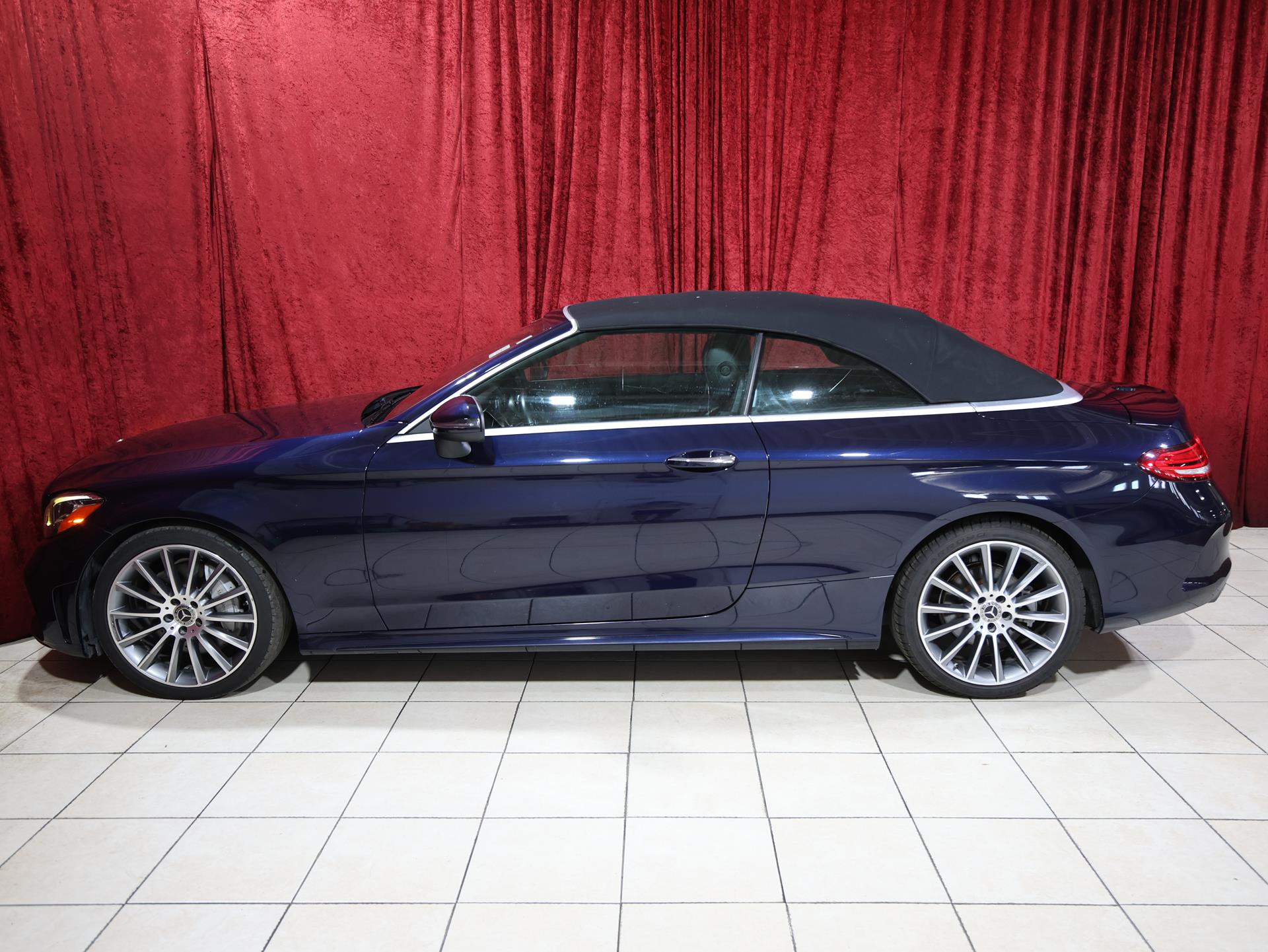 This C 300 Cabriolet blends open-air driving with refined performance and luxury. Finished in Lunar Blue Metallic with a Black fabric headliner and Natural Grain Grey Oak wood trim, it delivers a sleek and sophisticated look.