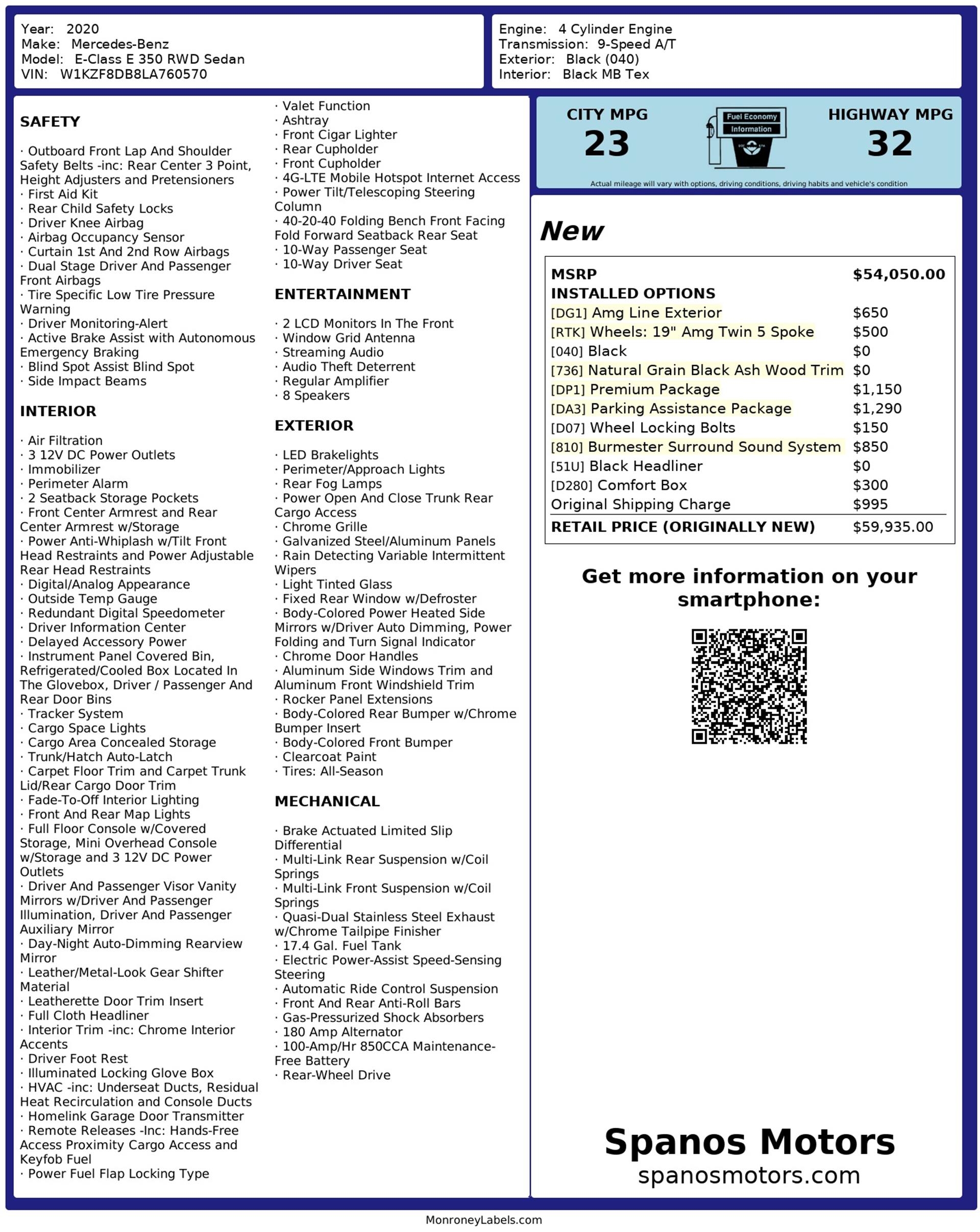 The 2020 Mercedes-Benz E 350 embodies refined sophistication and dynamic poise — a seamless blend of performance, comfort, and modern luxury. Its sleek, timeless design is enhanced by the AMG Line Exterior, which adds bold styling cues, perforated brake discs with branded calipers, and a lowered suspension that delivers both presence and precision on the road.