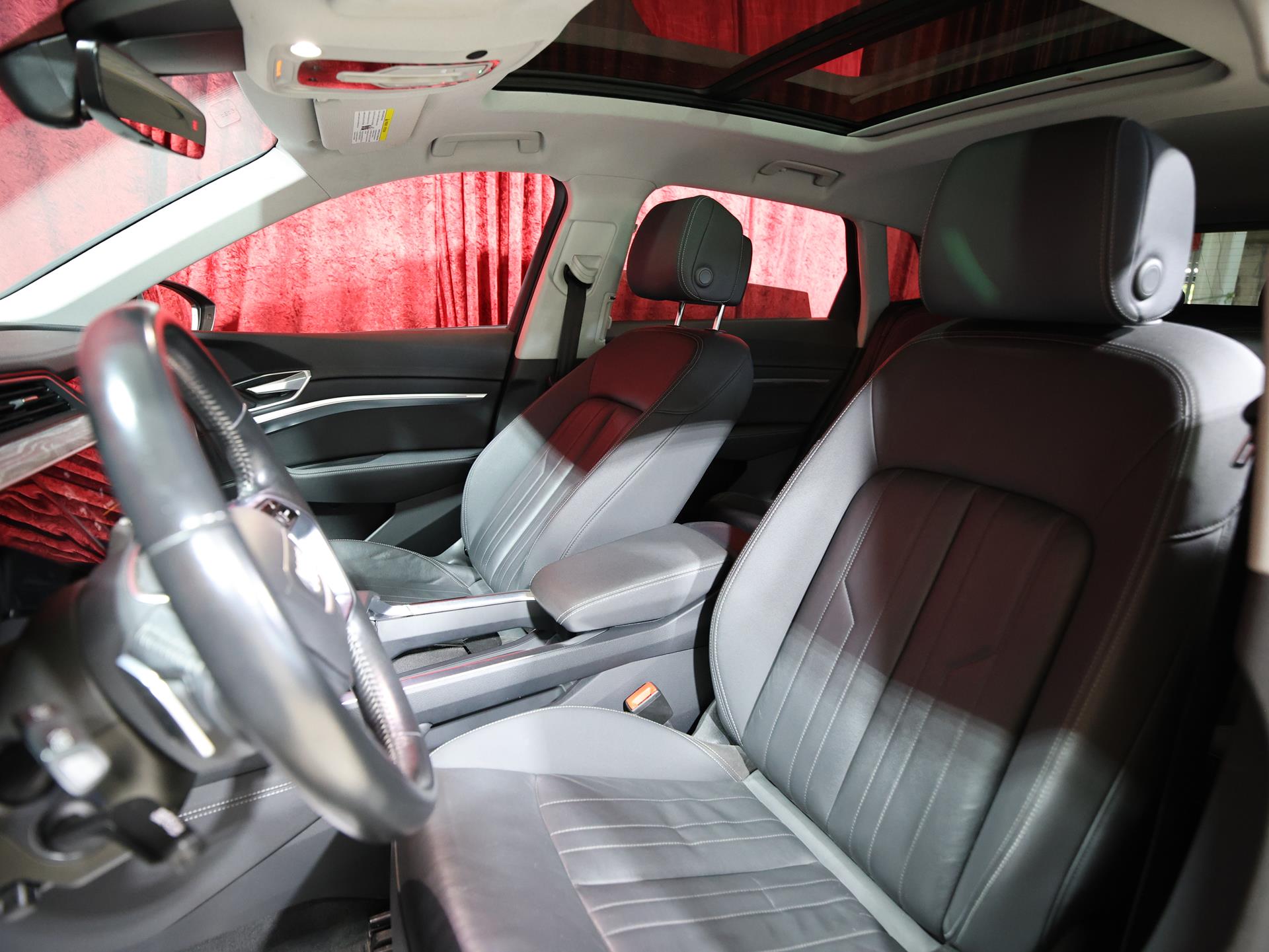 Inside, the cabin welcomes you with Black leather seating surfaces, creating a sleek contrast against the exterior. Every detail feels thoughtfully crafted—soft-touch materials, clean design, and intuitive tech all come together to make driving effortless. With quattro all-wheel drive seamlessly managing the instant electric torque, the e-tron delivers a smooth, confident, and quiet driving experience.
