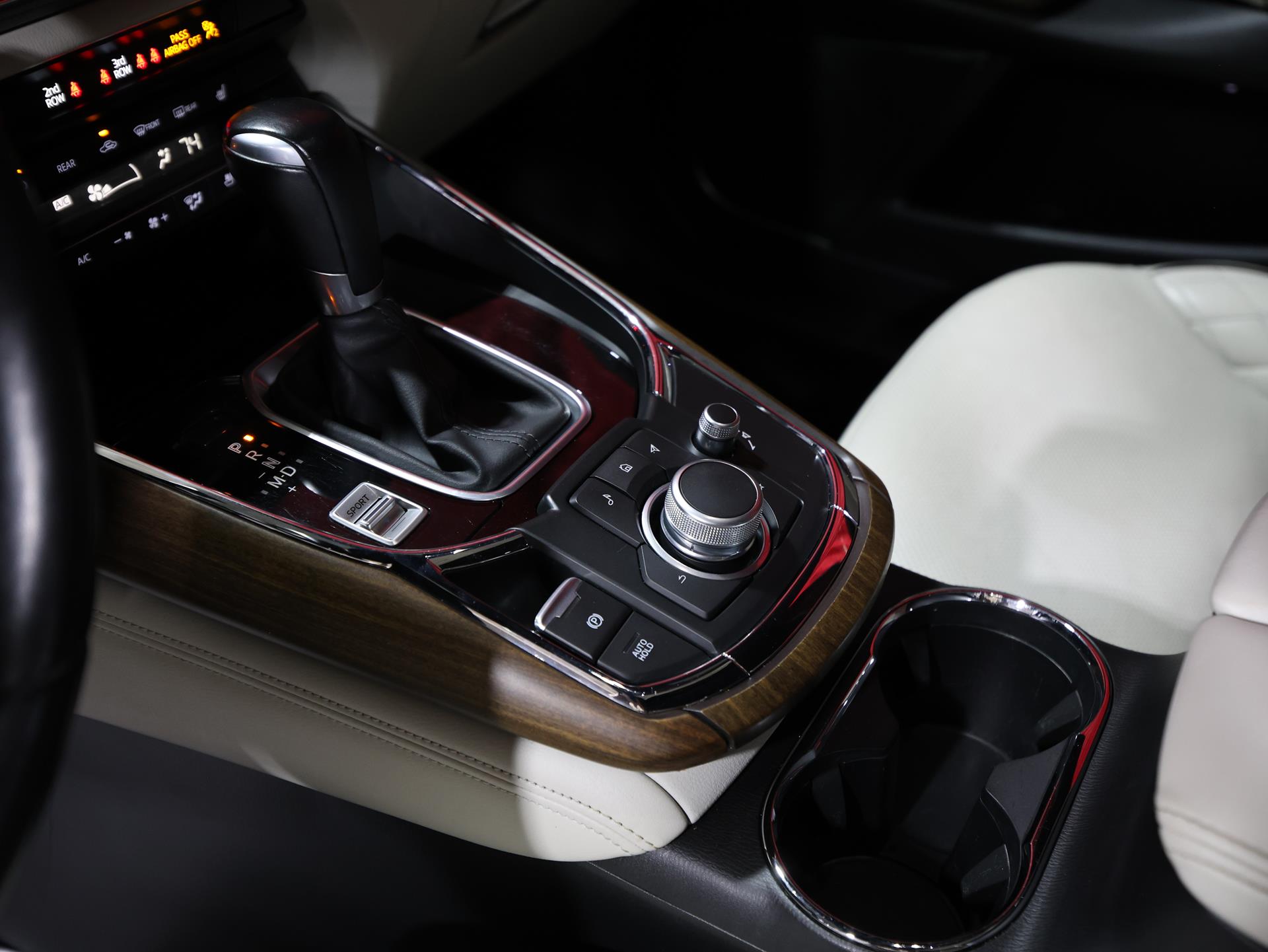 Open the door and you’re welcomed by illuminated doorsill trim plates, a small but thoughtful detail that sets the tone for what’s inside. The cabin is trimmed in rich Parchment Nappa leather, wrapping the first and second row outboard seats in a level of comfort that feels more luxury lounge than family SUV. Every surface is carefully considered, blending Mazda’s craftsmanship with a clean, modern design.